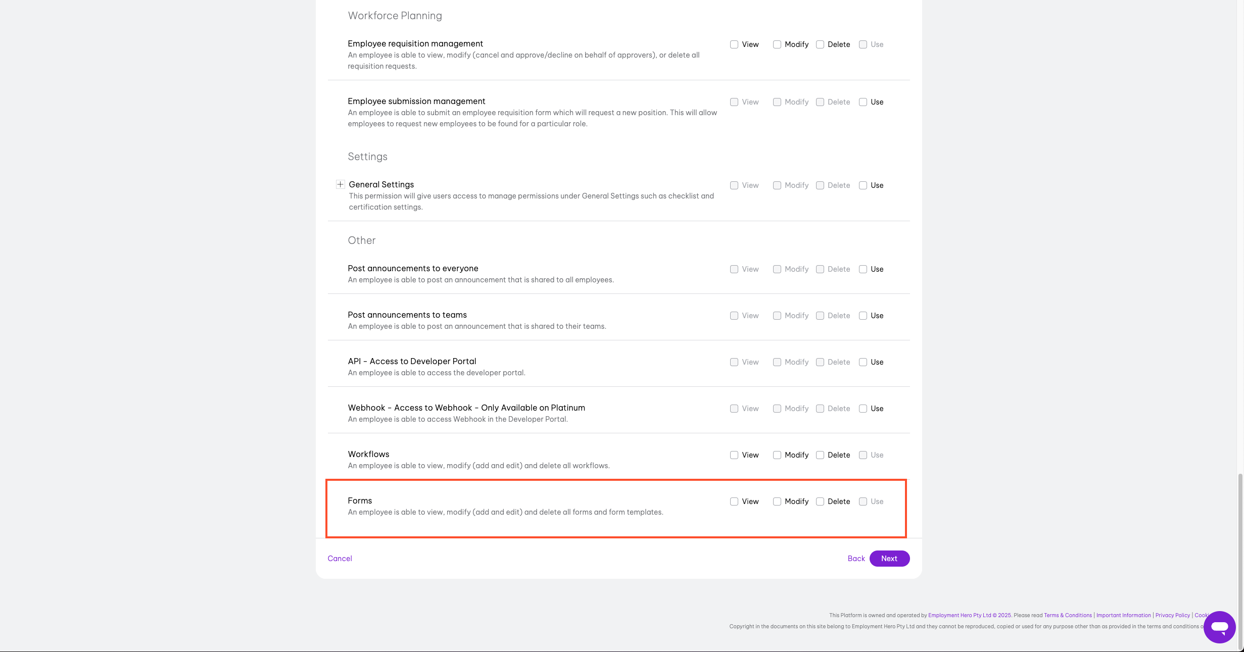 - In the Employee permissions window, click on Next in the bottom right-hand side.