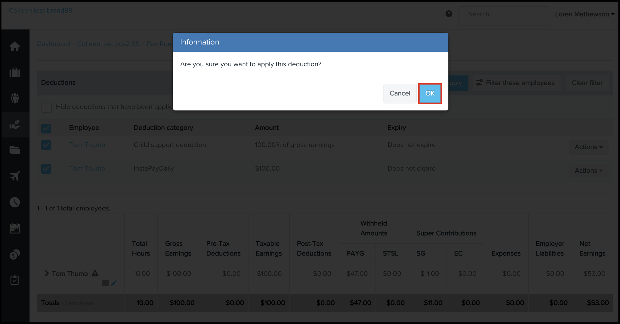This includes automatically Applied deductions (those listed on an employee's pay run inclusion page at the time of pay run creation) and new deductions (those added after the pay run creation).
