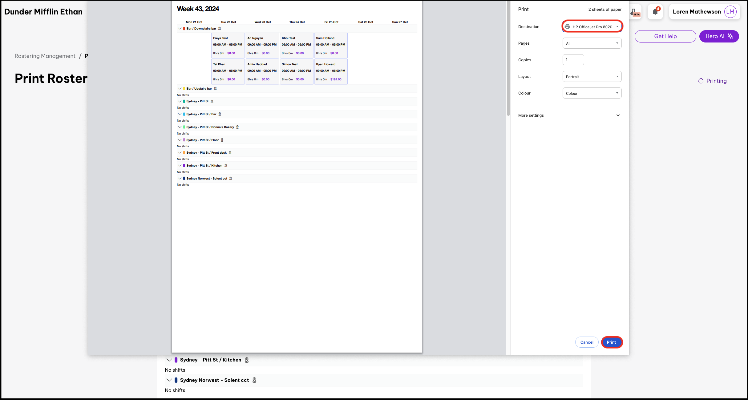 - Select your printer, then click Print.