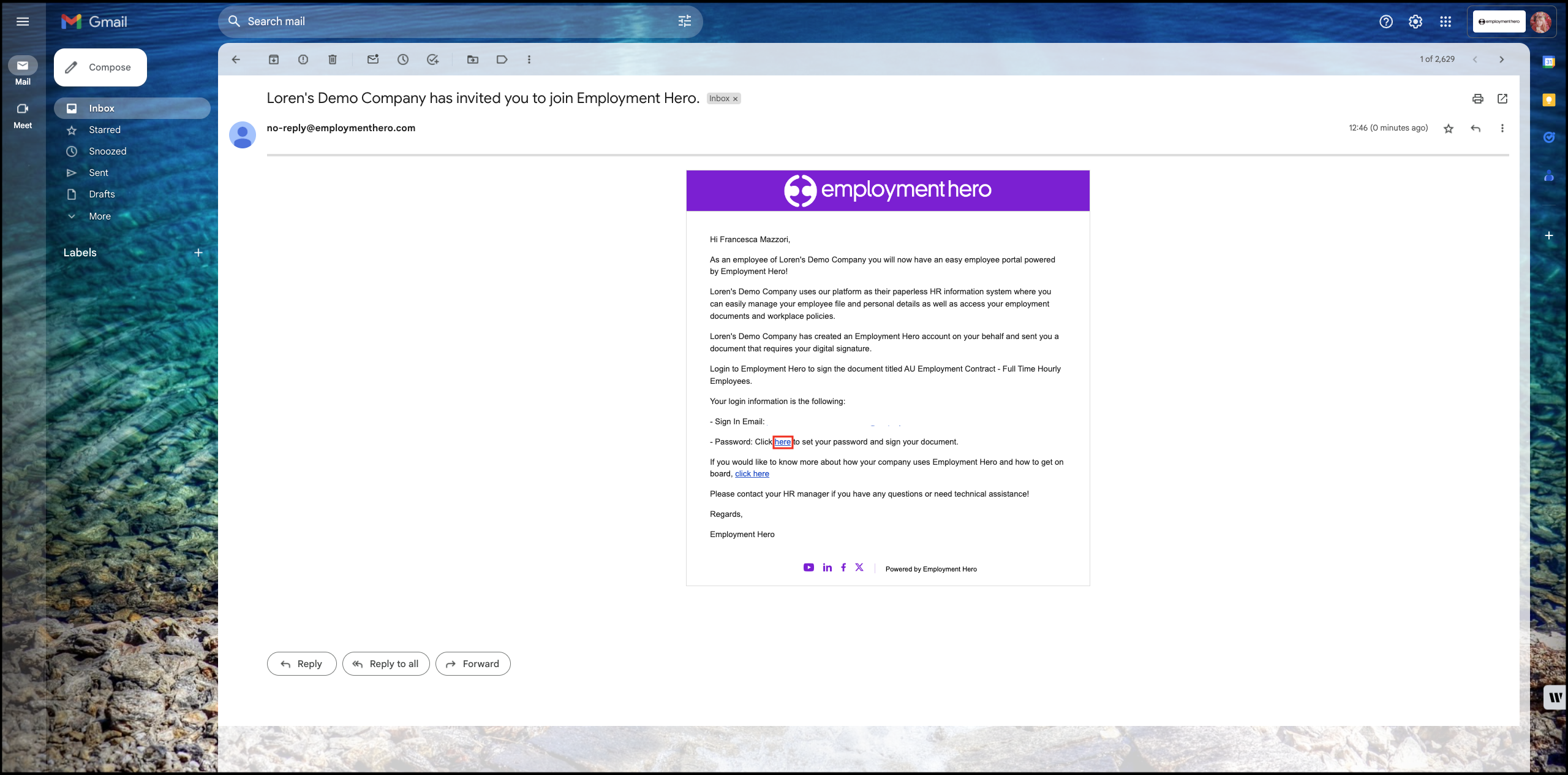 - Open your invitation to Employment Hero email.