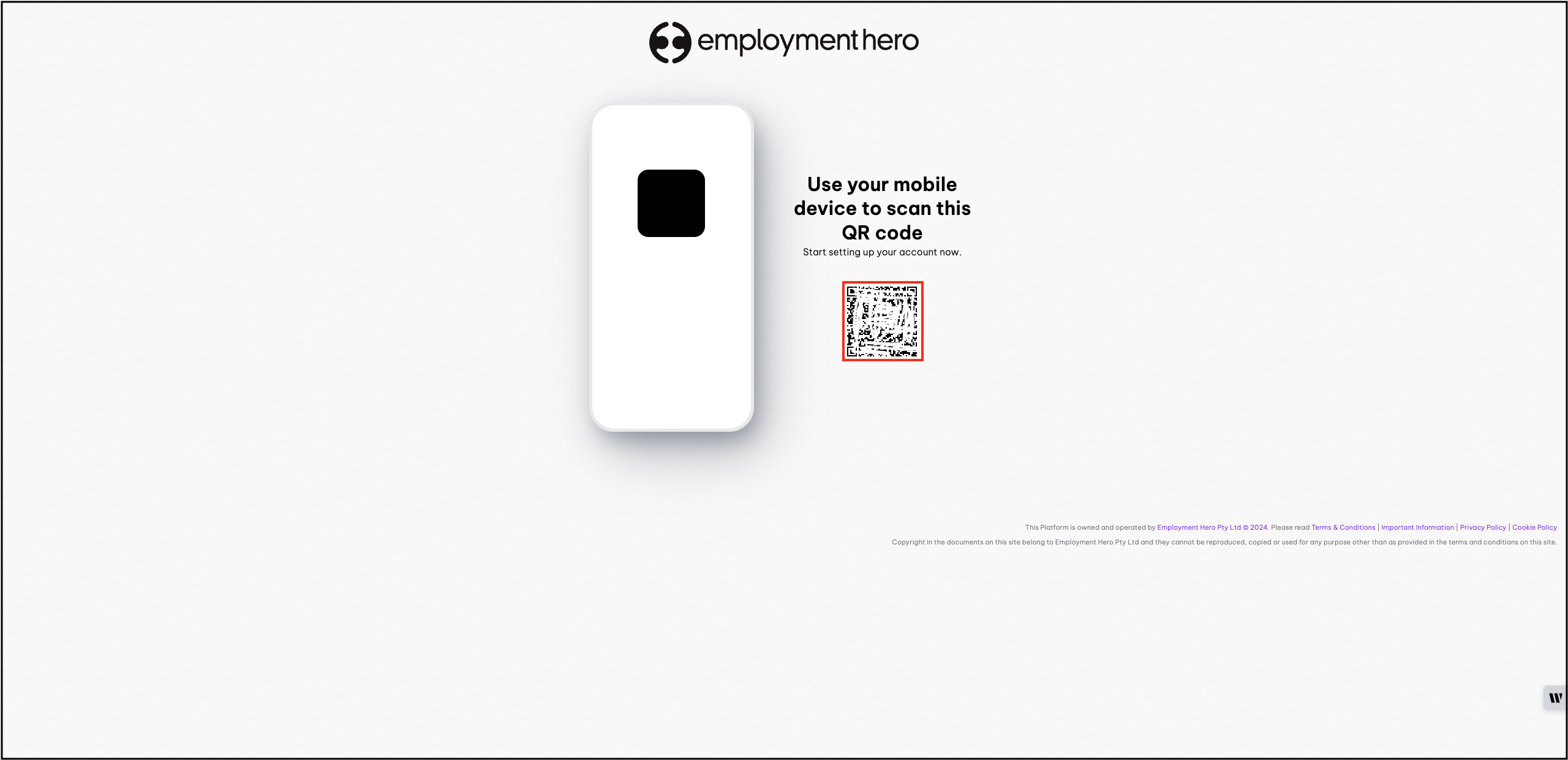 This will redirect you to the following QR code to scan and open Employment Hero on your phone: