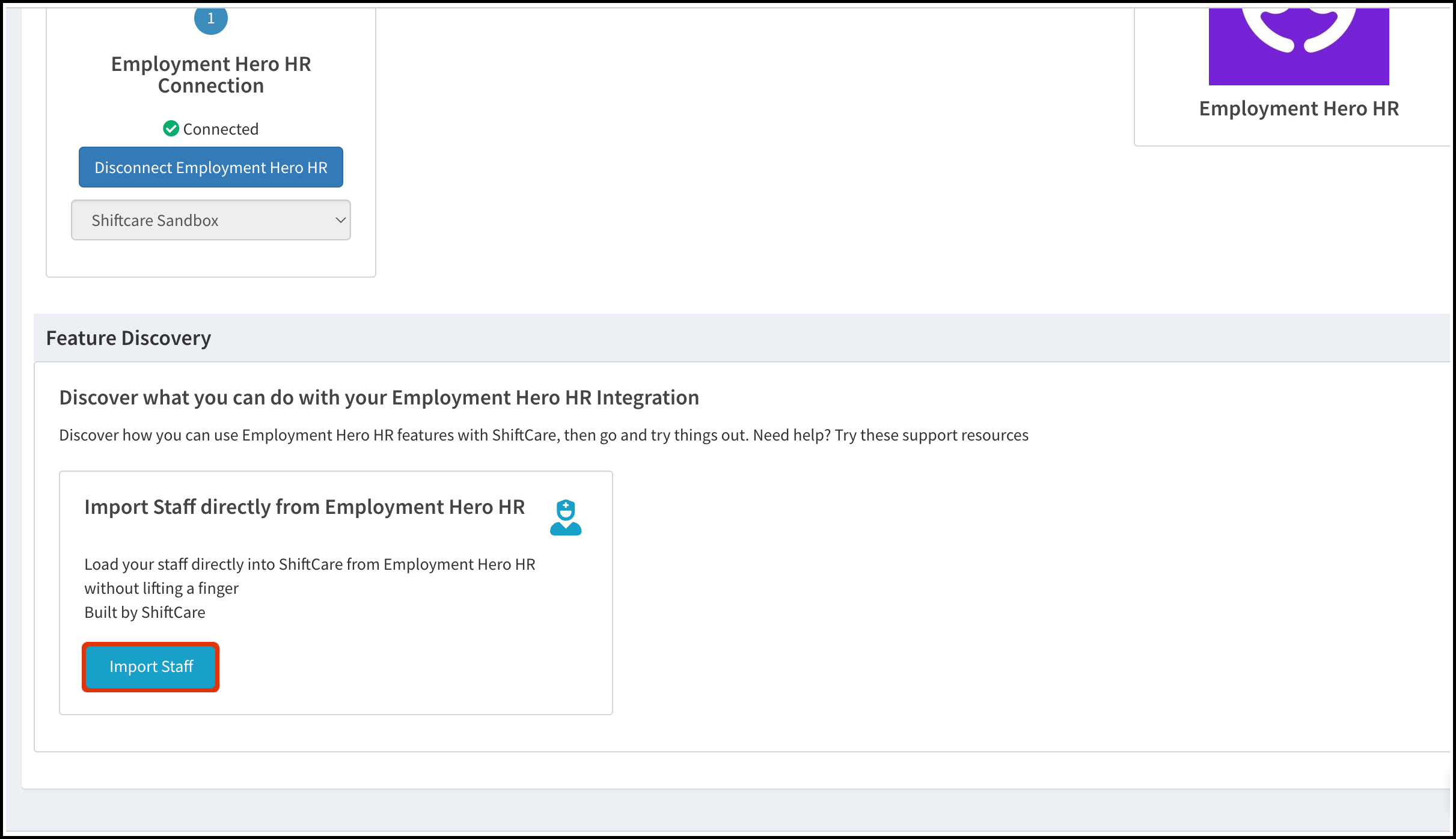 This article explains how to set up the integration and import staff from the Employment Hero HR to ShiftCare. If you want to integrate ShiftCare with Employment Hero's Payroll platform, see this article.