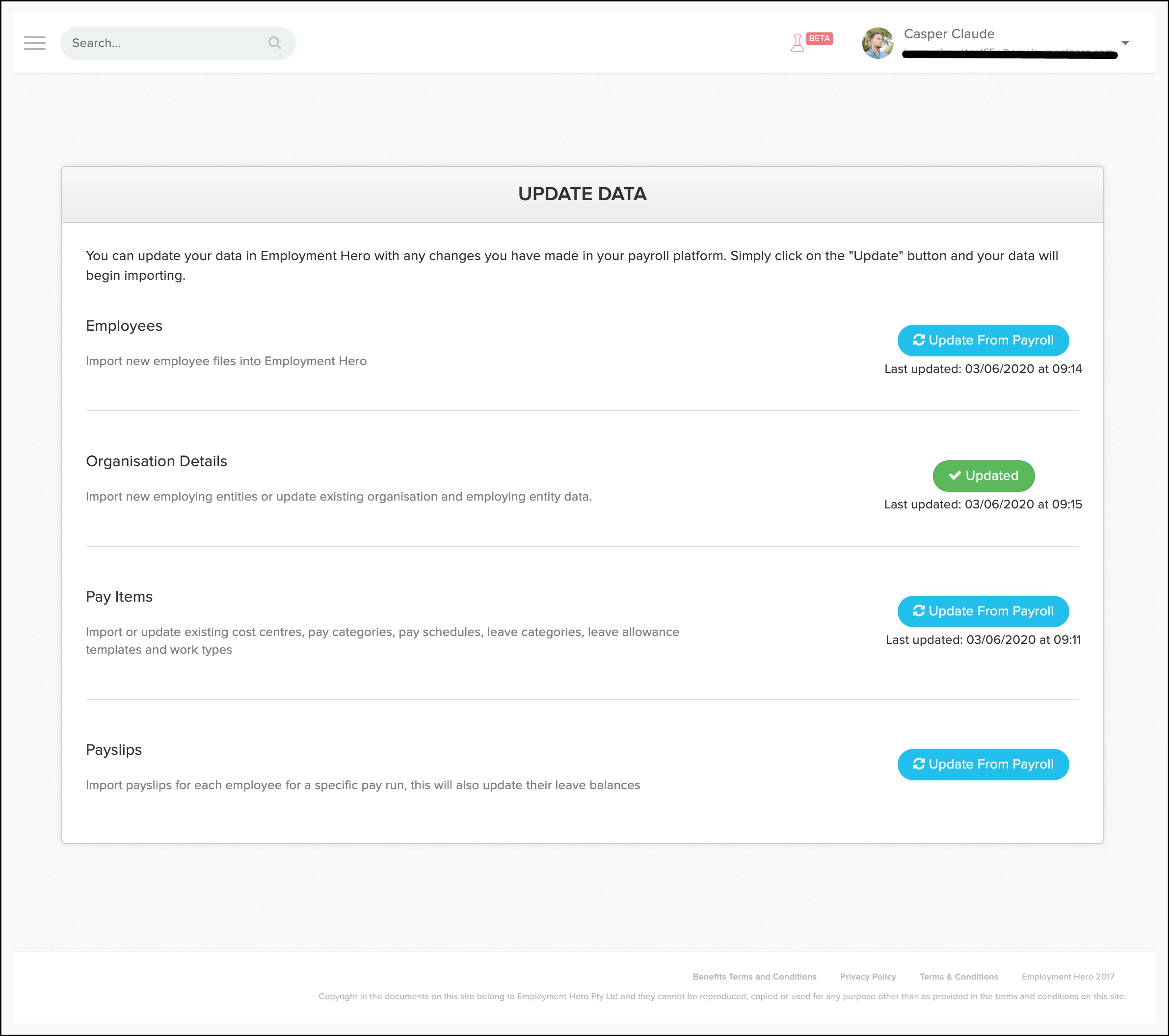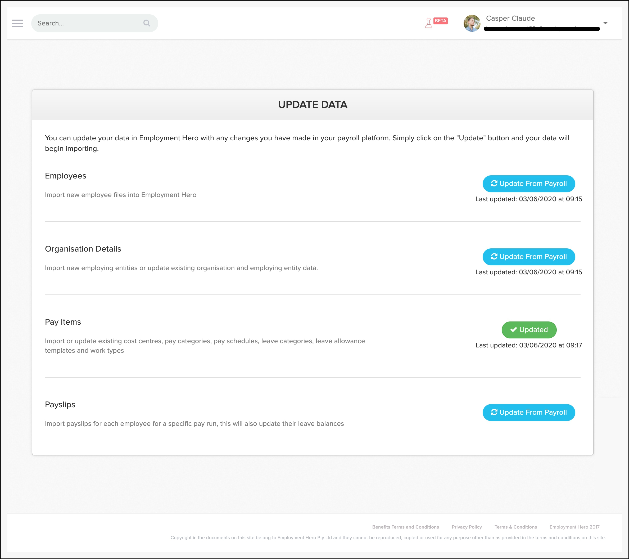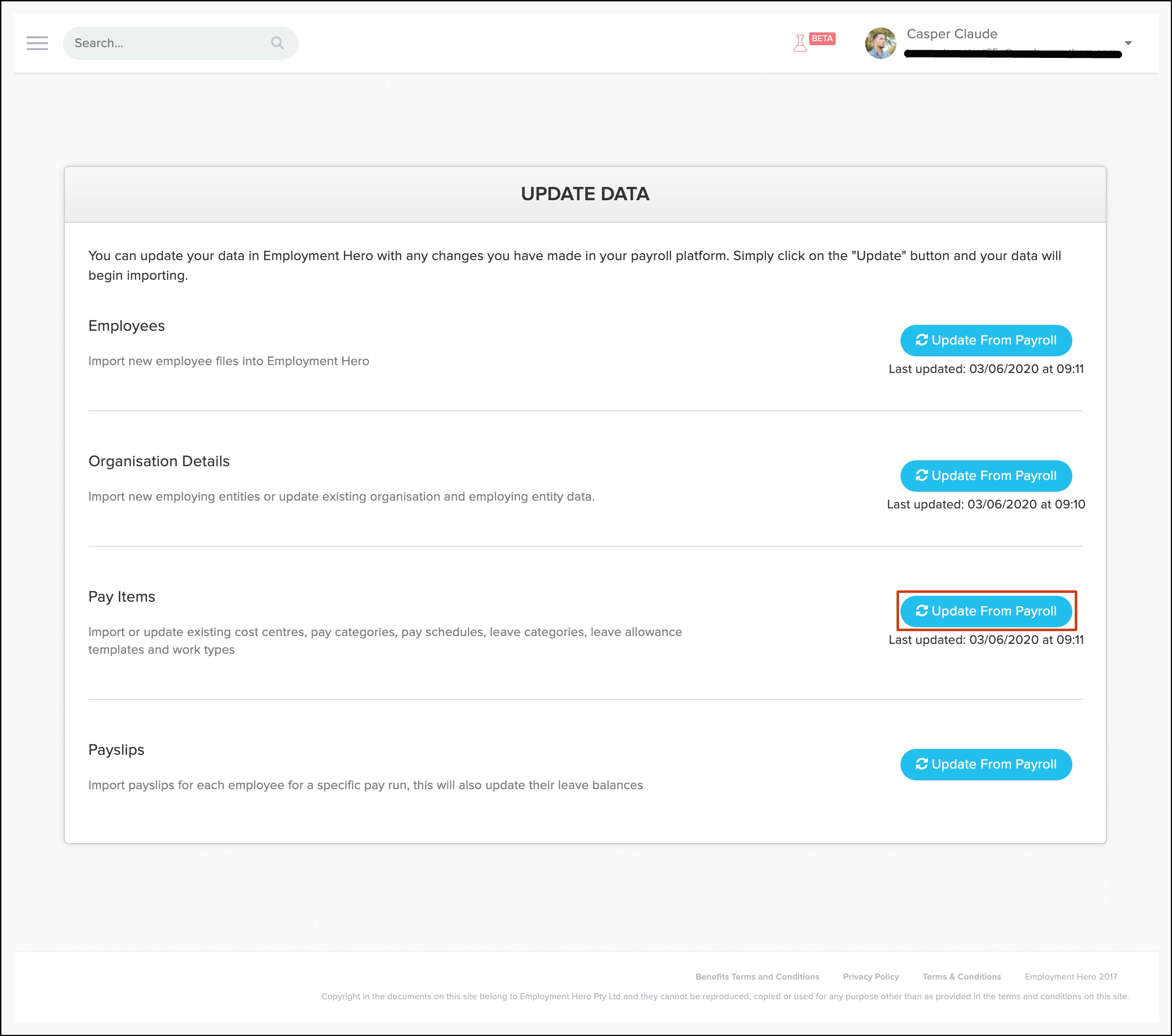 - In the Employees section, click the Update from Payroll button.