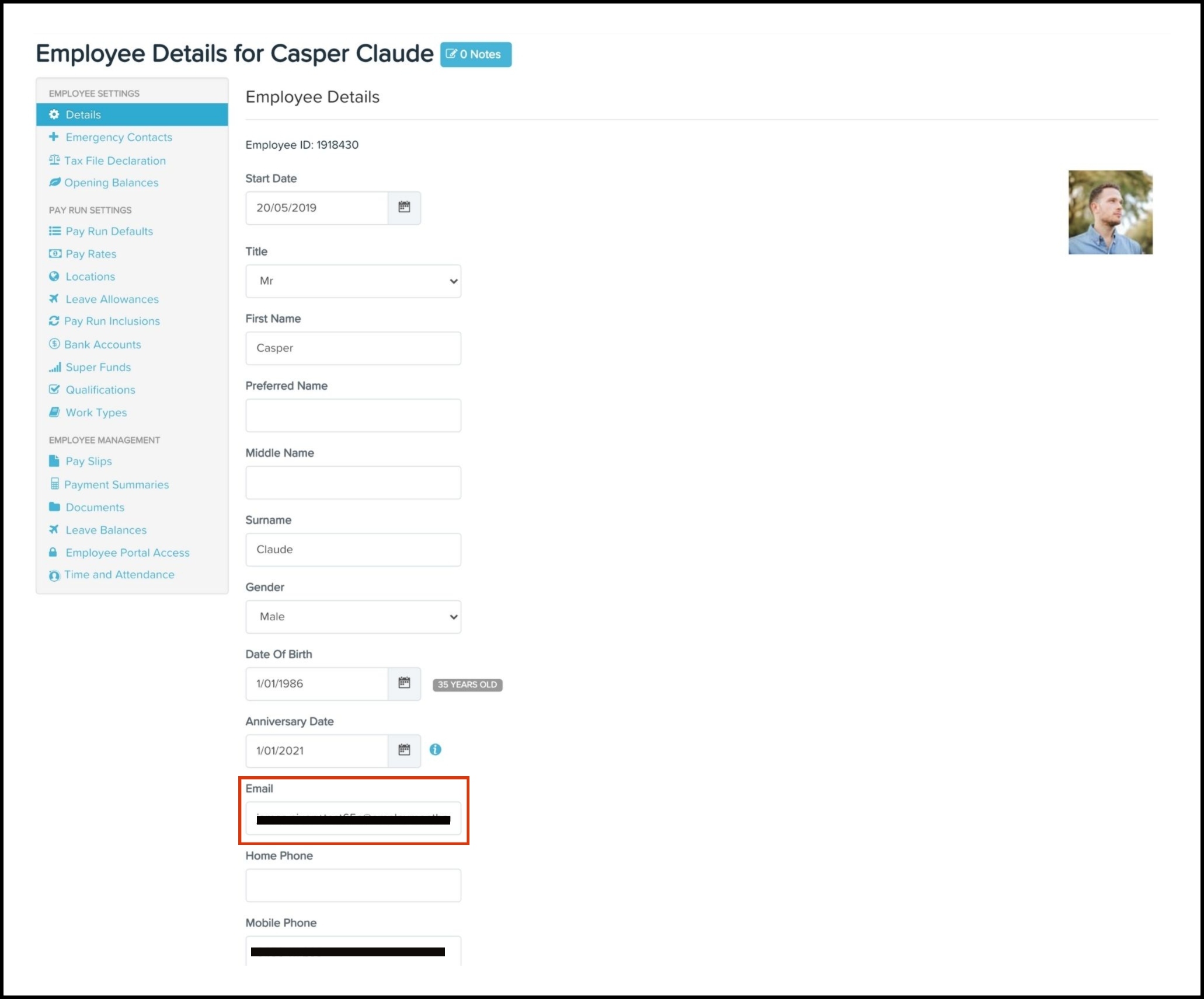 - Click on the employee who needs their email changed.