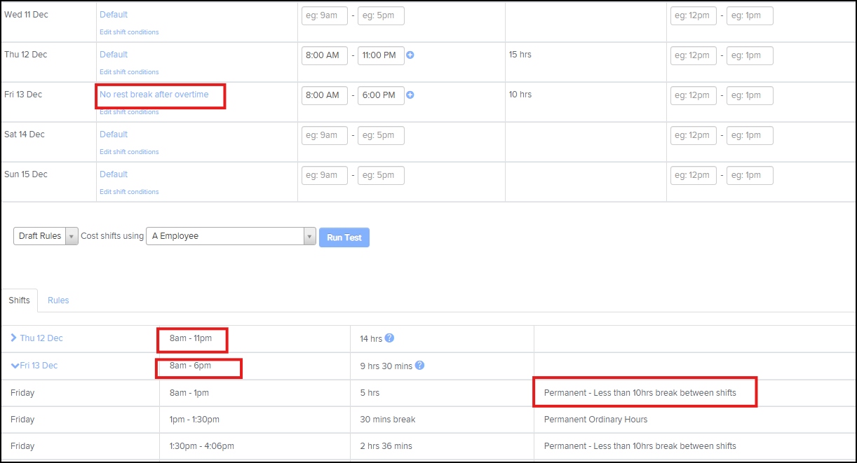 If you have any customised rules within the award, it is important to note: