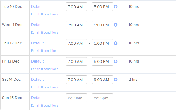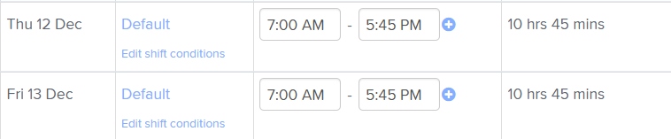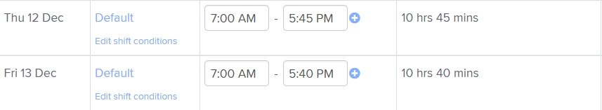 - A condition has been added specifying that the shift end time must fall between 12:01 am and 7:00 am.