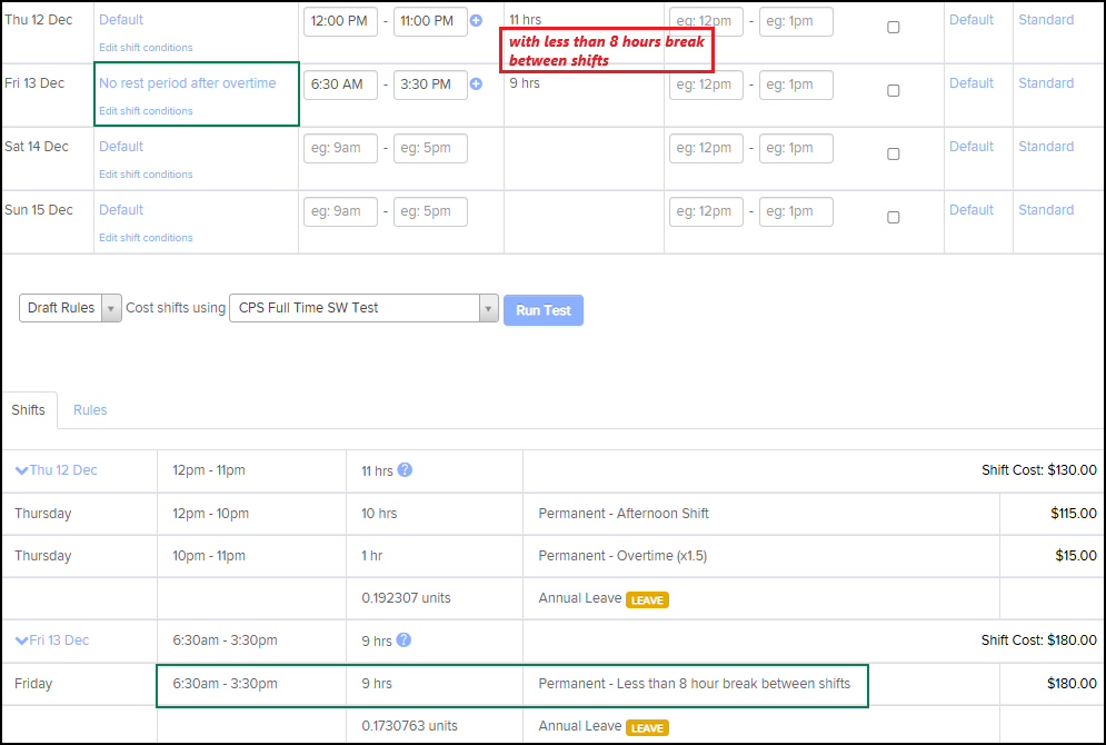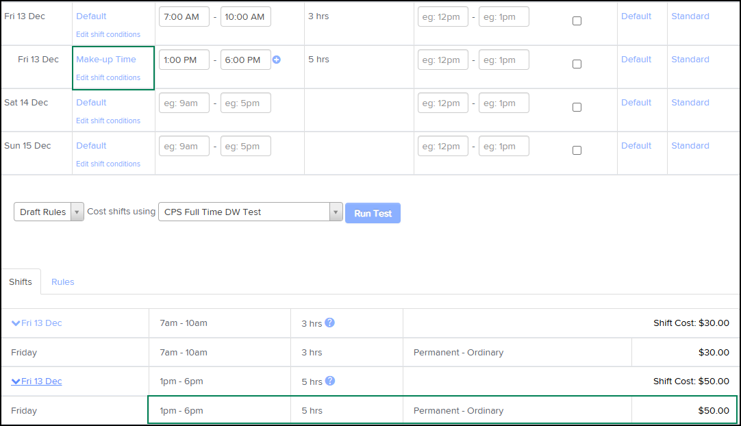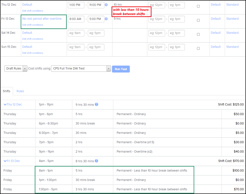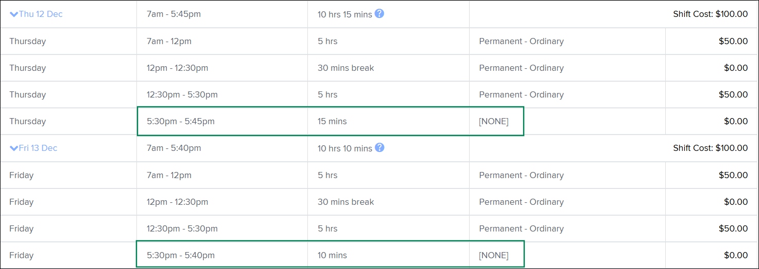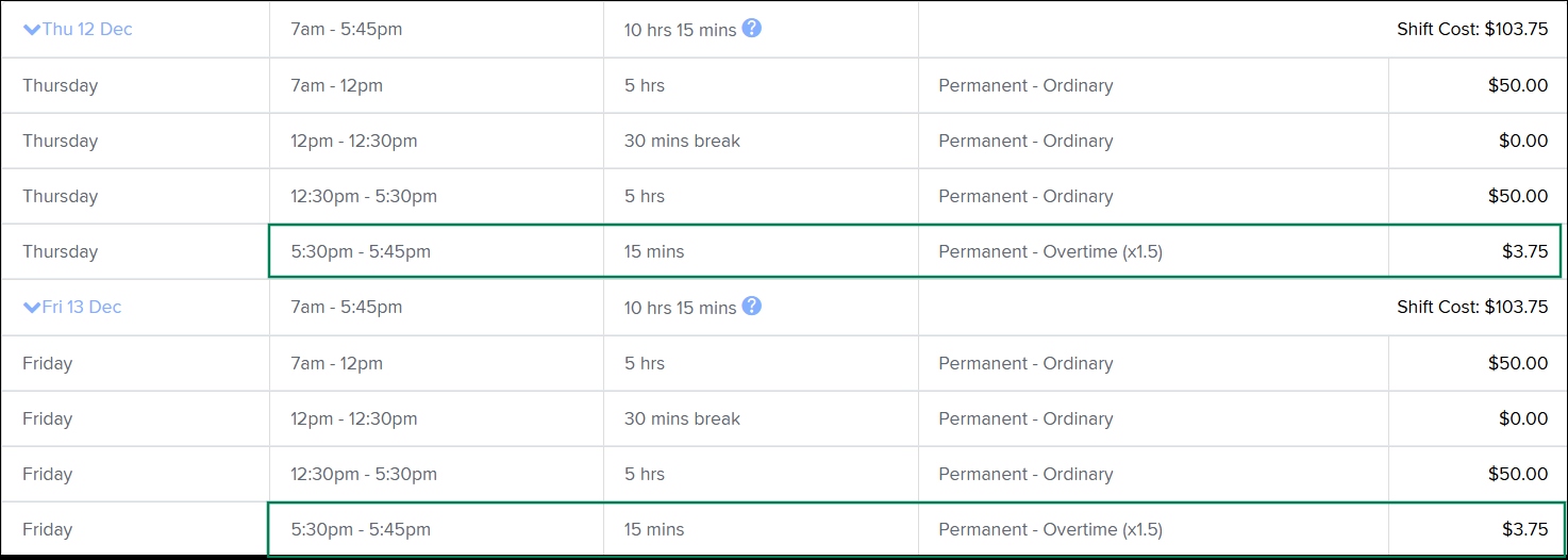 - To enable accurate rule application, employees must submit timesheets that include both start and end times for their shifts.