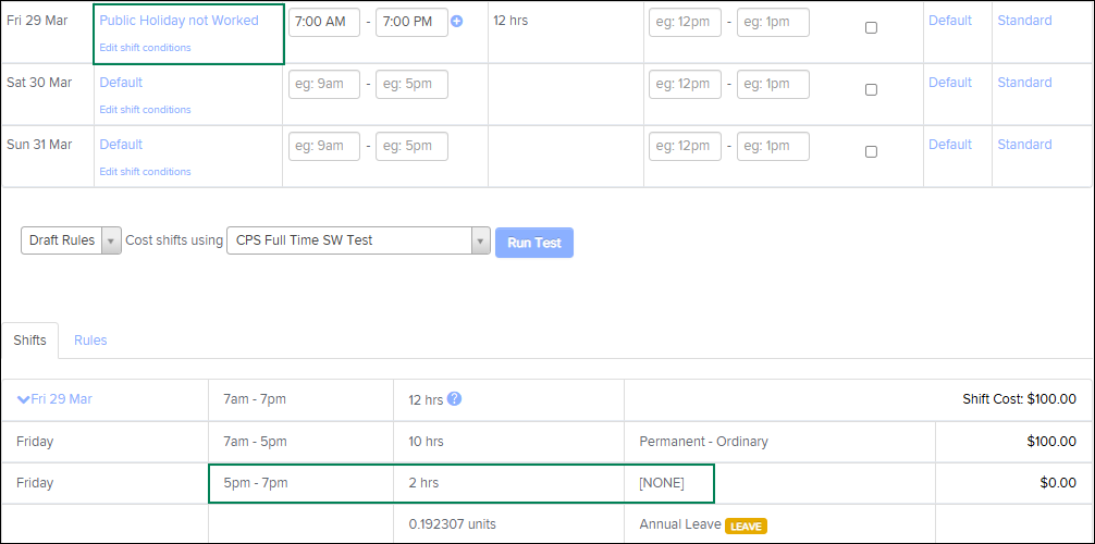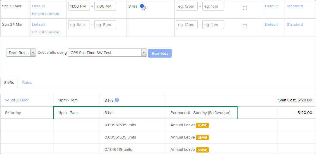 - For employees who submit timesheets in units rather than time, a customised rule will be required to convert these units into start and end times.