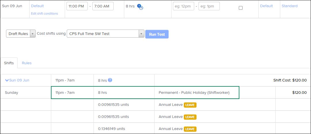 - Shift starts at 11:00pm on a public holiday and extends into a non-public holiday.