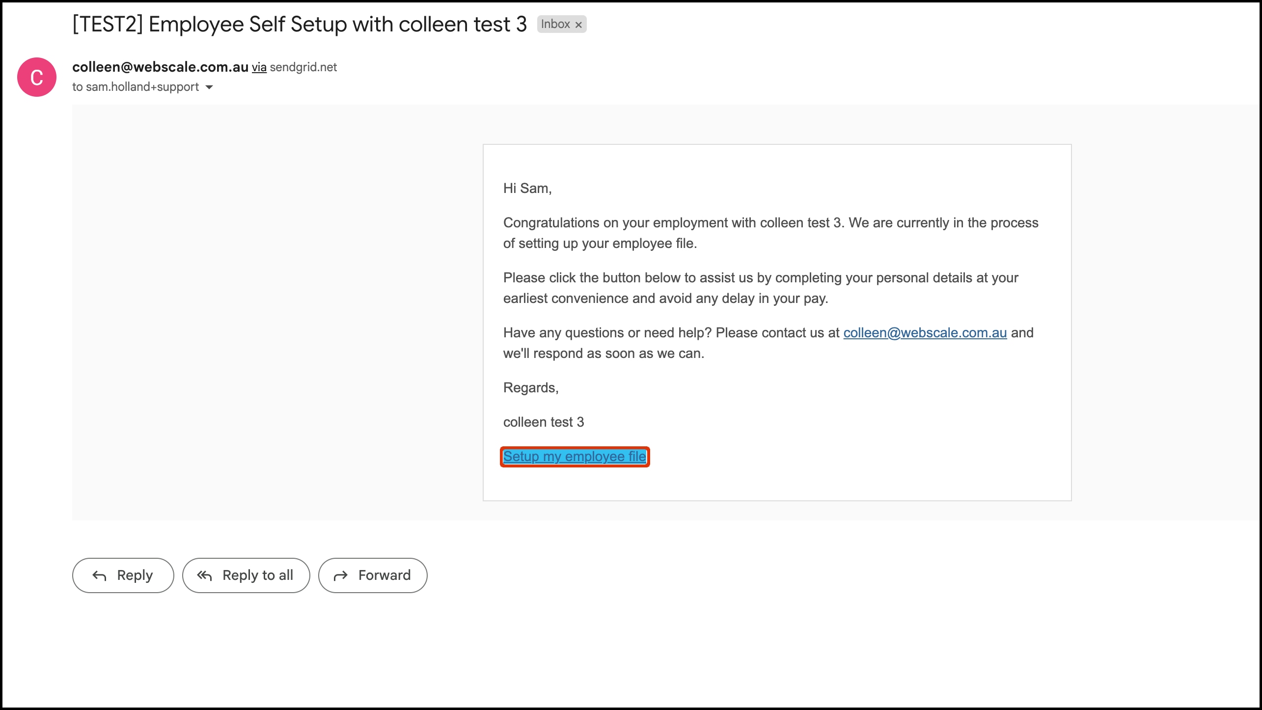 - Open the Employee Self Setup email in your inbox.