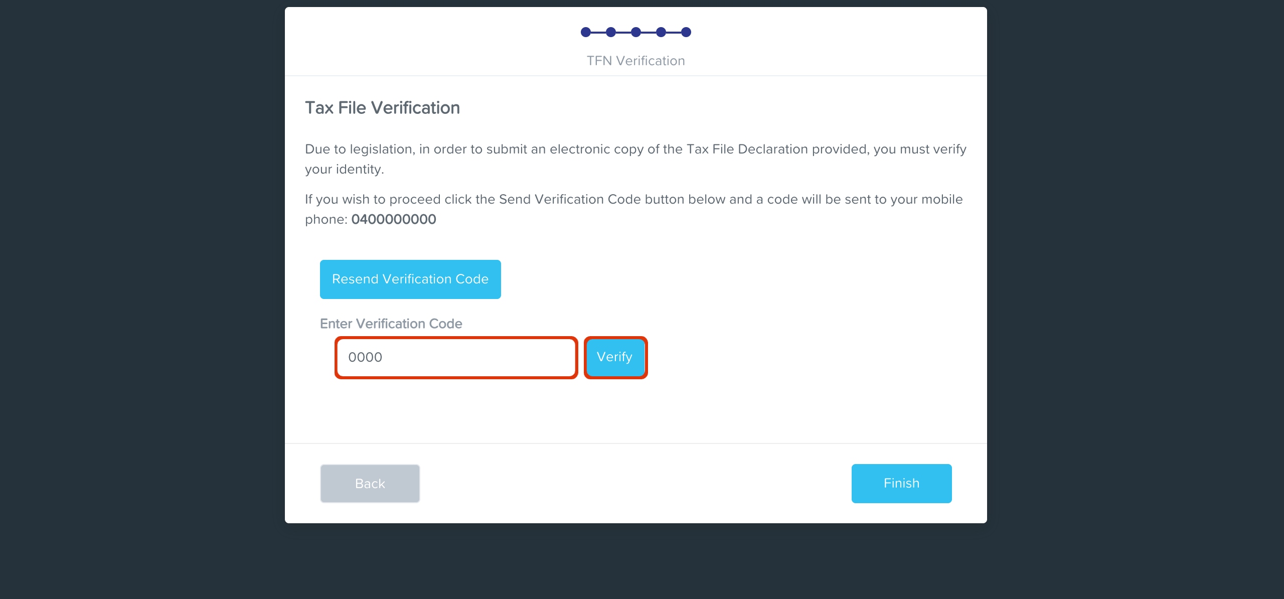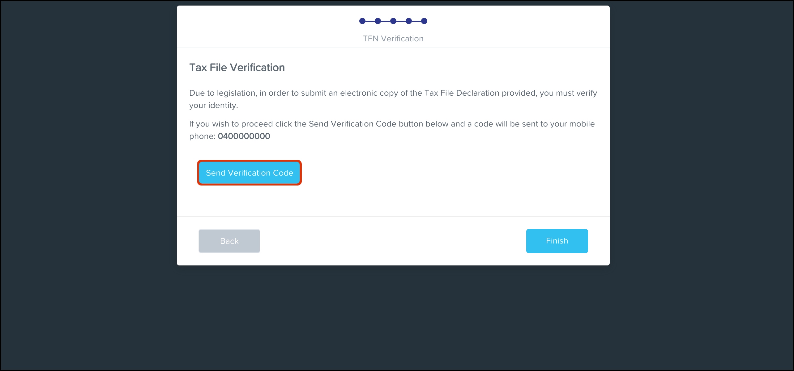 - Click the Send Verification Code button.