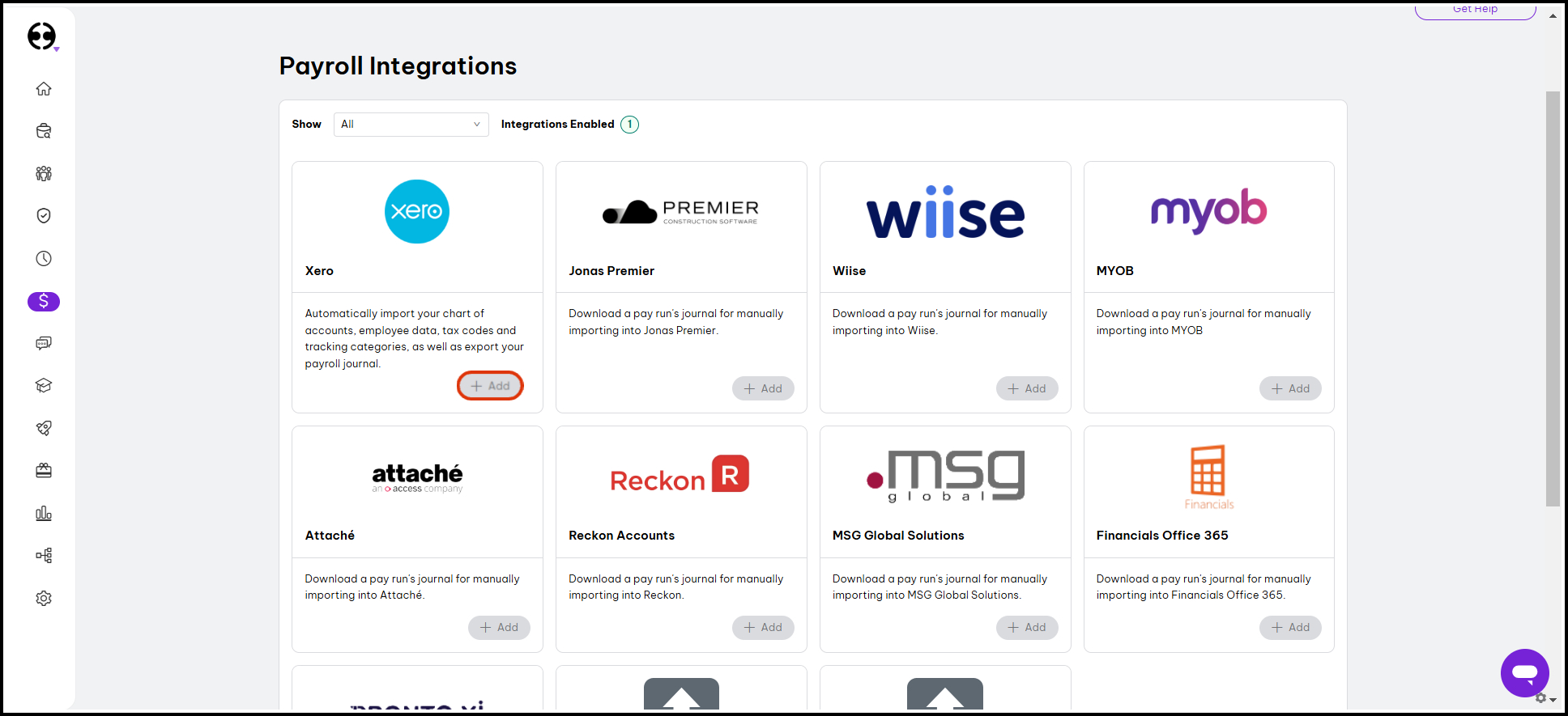 This article explains how to manage payroll integration on the EOS platform. Integrations allow you to import information such as chart of accounts and employee data into your EOS platform. You can enable and disable payroll integrations as needed