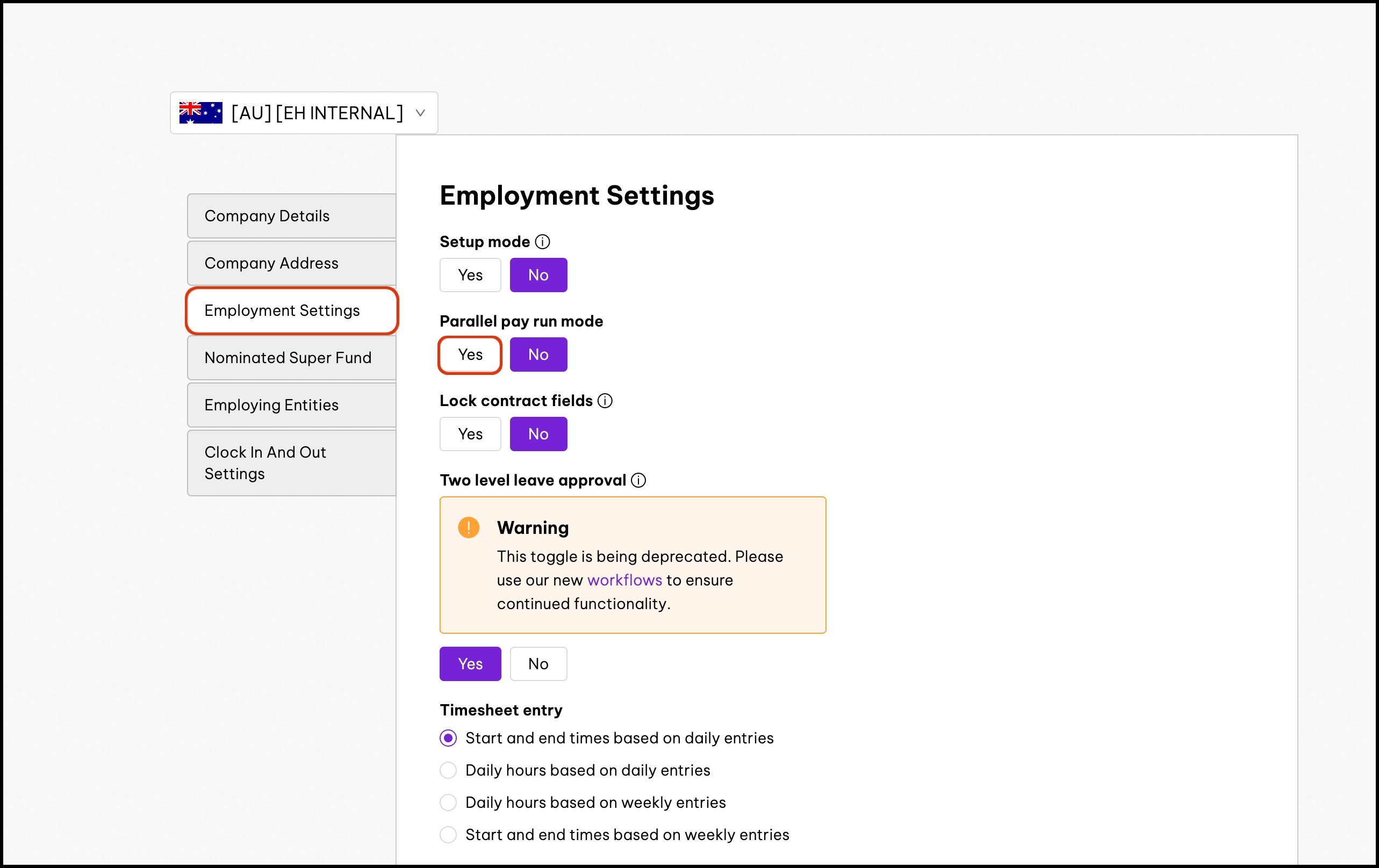 When Parallel pay run mode is turned on, your Employment Hero platform temporarily stops syncing HR data (such as new employee profiles, salary changes, and bank details) to payroll. This creates a stable testing environment, so you can validate payroll results using consistent data across runs.