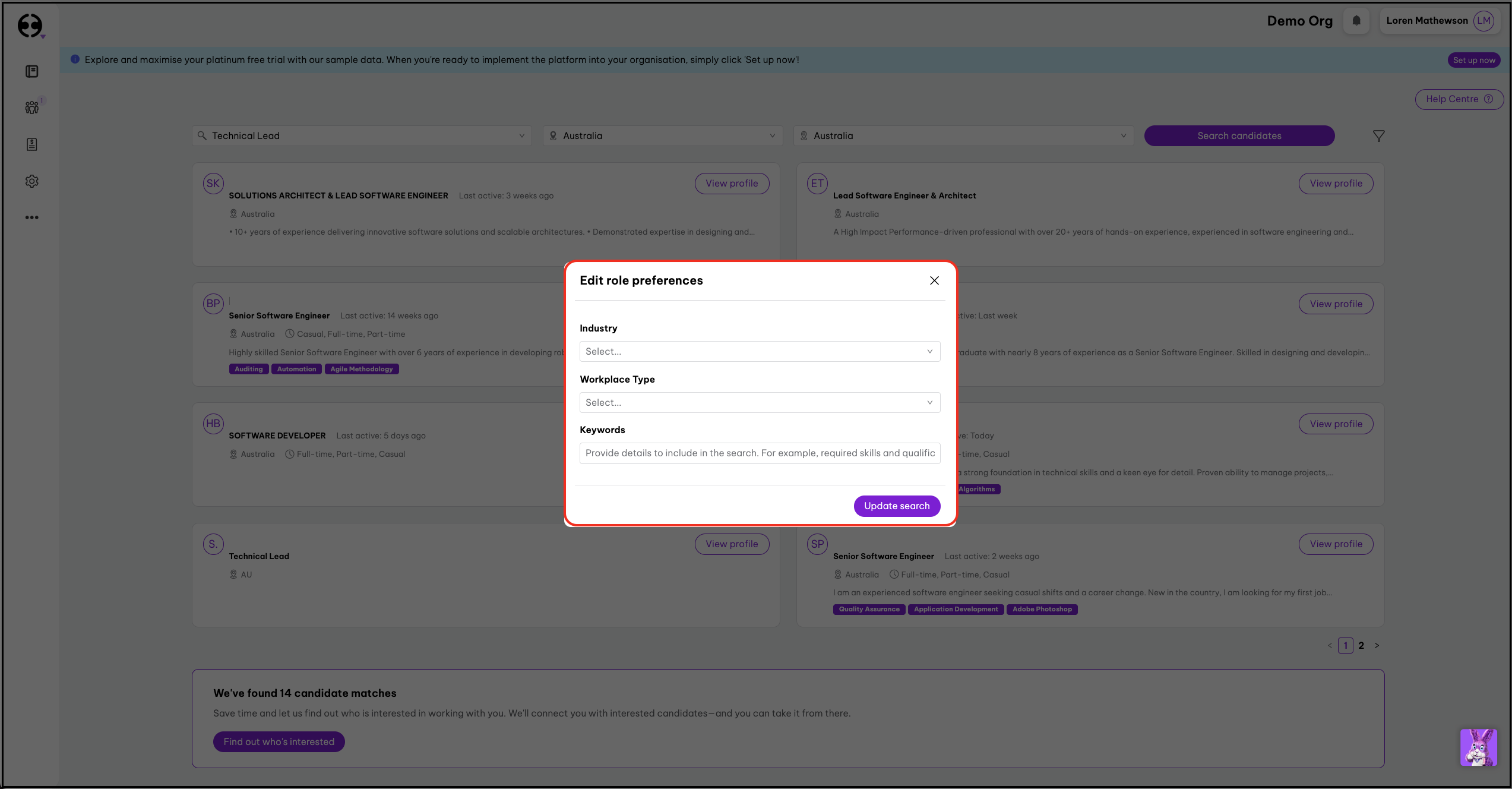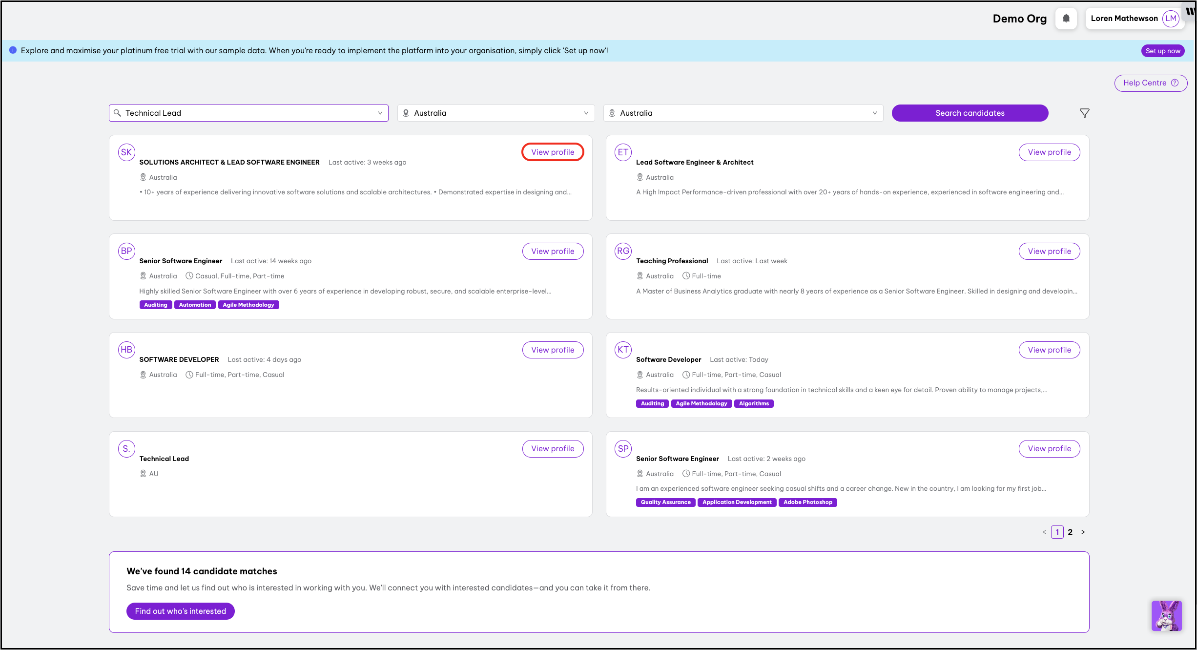 - Employment Hero will display the top 15 candidate matches.