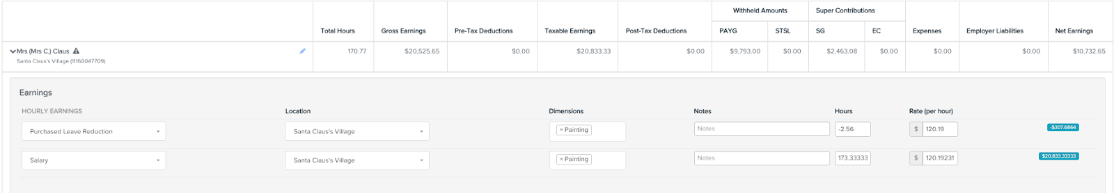 Pay Run - In the pay run, this will display as a negative earning against the selected category, reducing the employee’s gross wages accordingly.