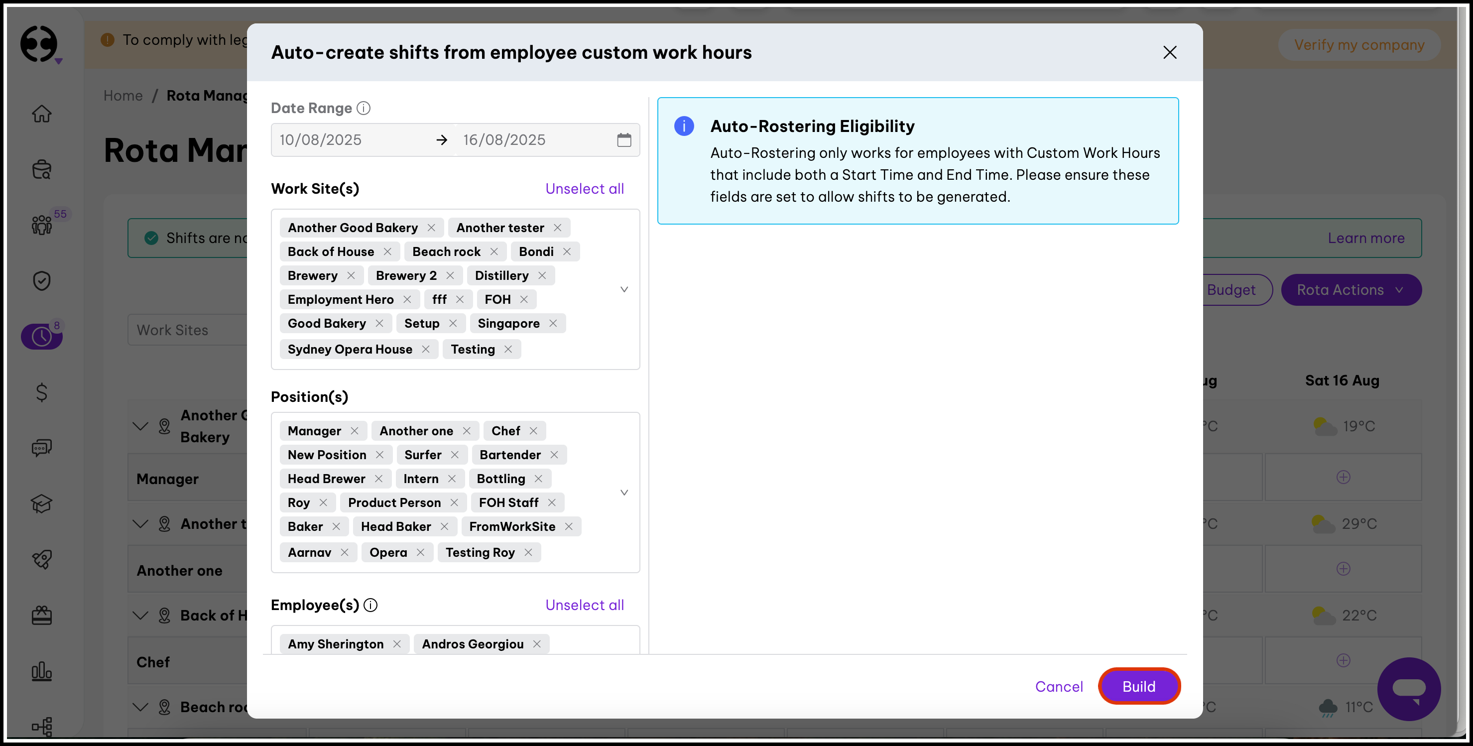 Note: Only employees with complete custom work hour configurations (including start time, end time, work site, and position) will be eligible for Auto-Rostering.