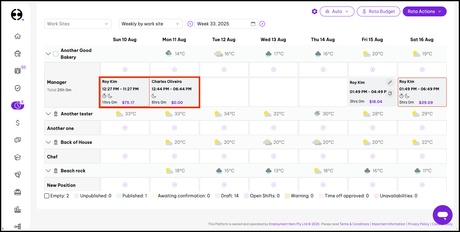 - Filter by specific work sites or positions for targeted rostering