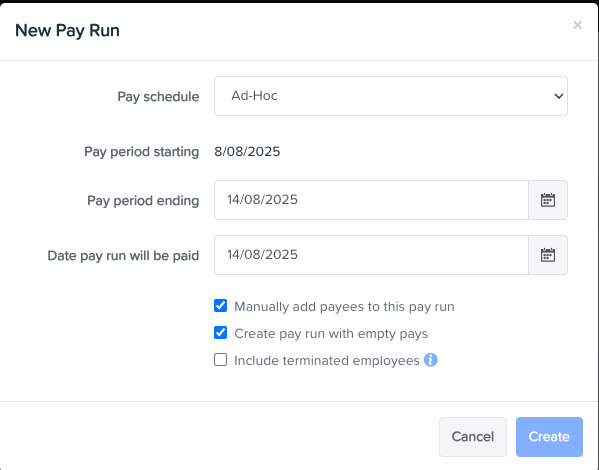 2. Add the Employee to the pay run