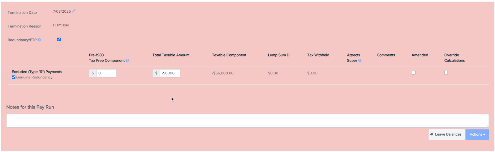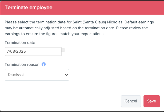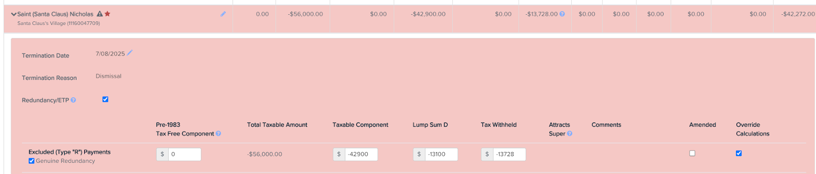 - Check the Original Termination to reverse out the pay run earnings exactly as required. Taking a screenshot or having this open on another tab is great to help you with this.