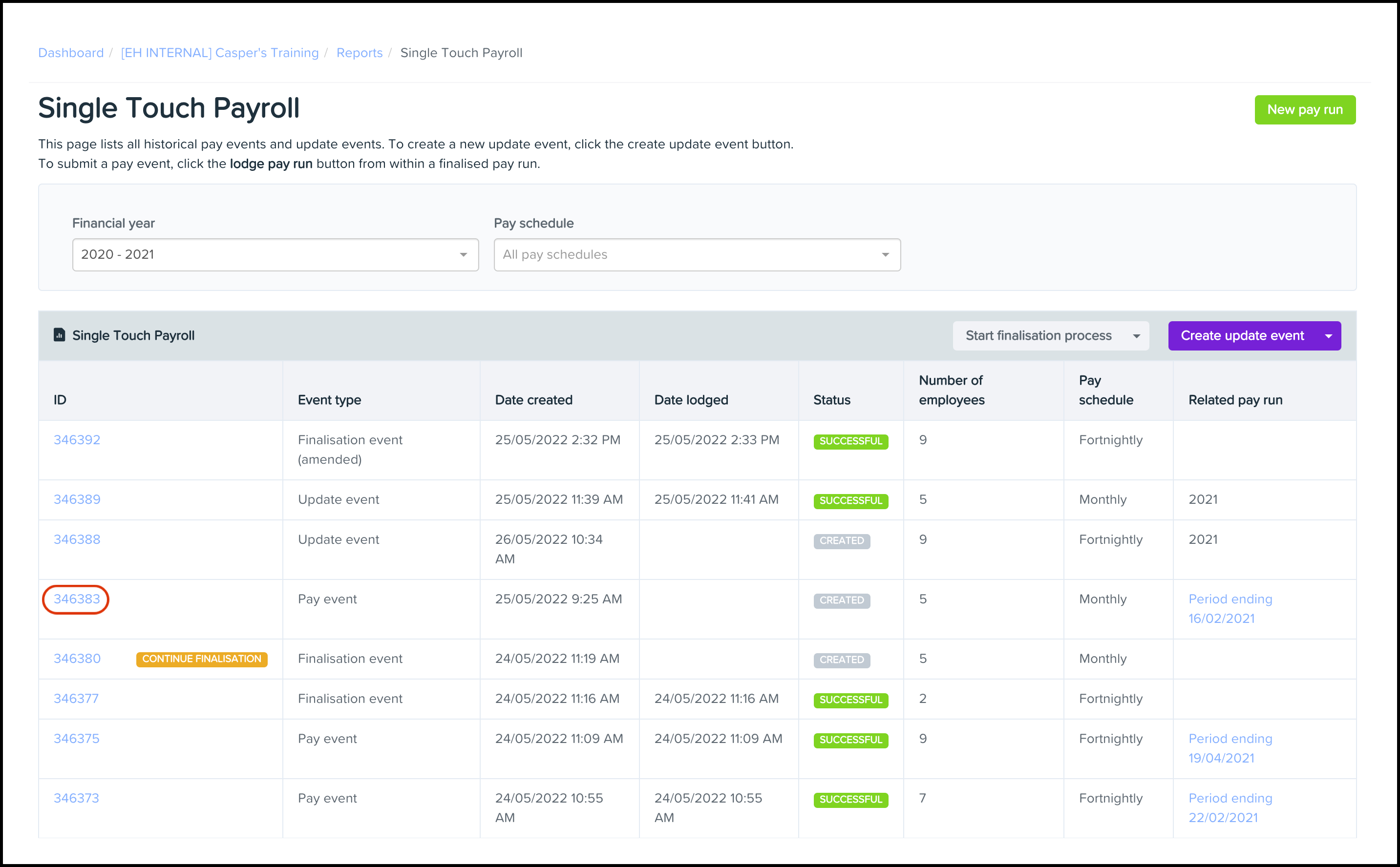 Similarly, an employee who has not been paid any earnings in the financial year you are finalising will obviously not show up in the finalisation event.