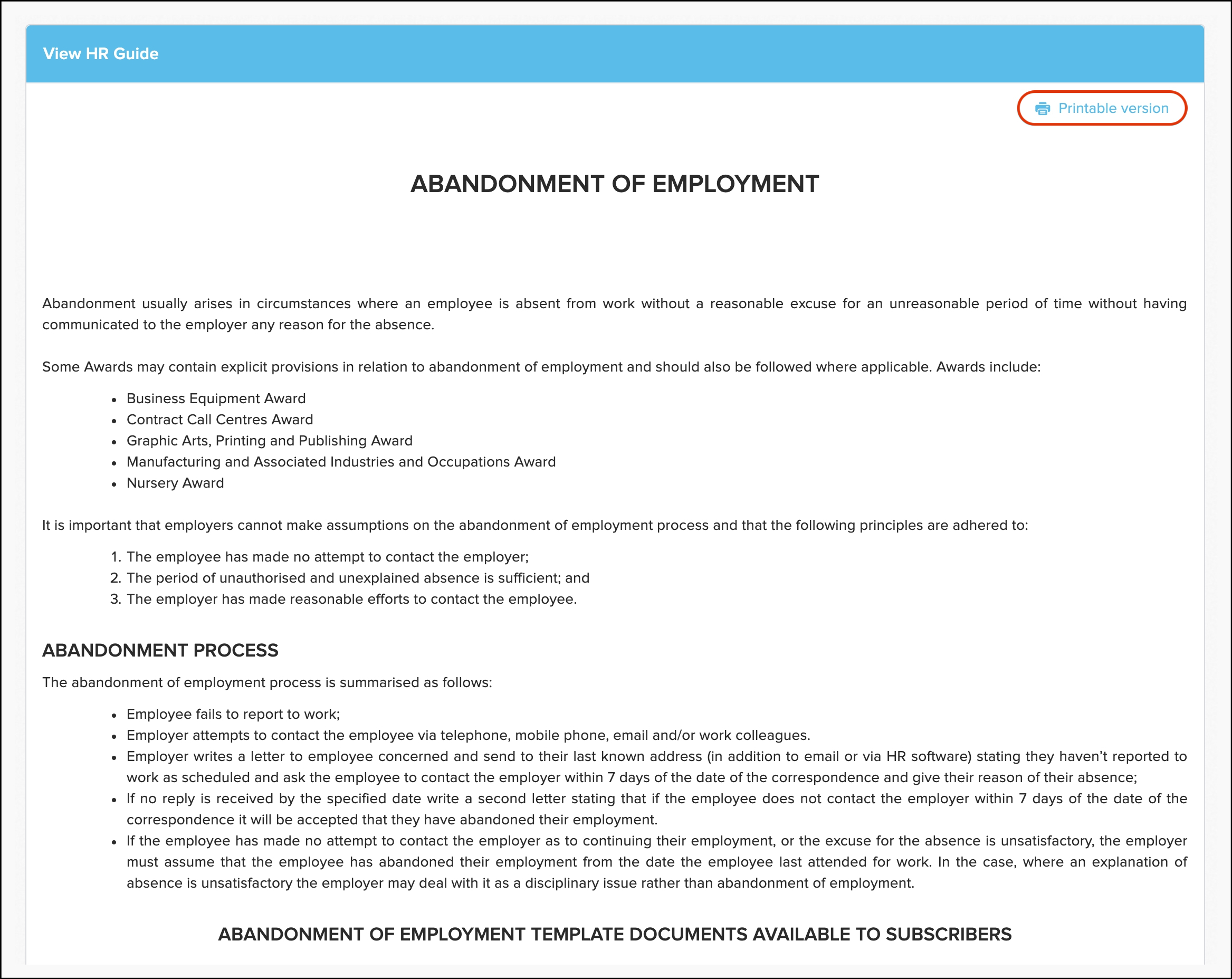 Employment Hero provides our users with a curated list of HR Guides, covering a wide area of HR best practise such as setting goals, parental leave and record-keeping requirements. We have created these documents in house by our HR specialists, and we constantly review this content to ensure they meet industry standards.
