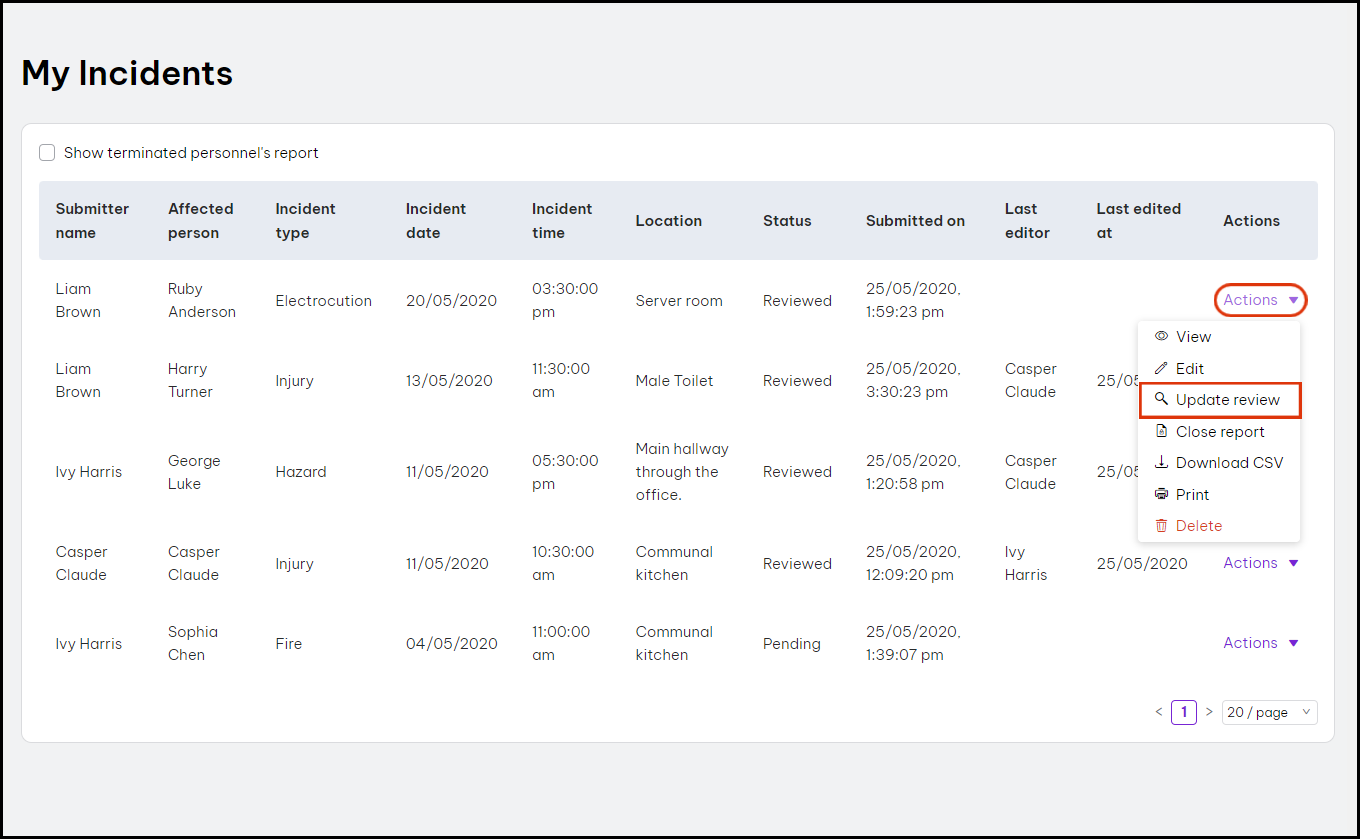As a manager, it is important to have one central place where you can manage the safety reports your employees have submitted. These safety reports inform you of any serious workplace health and safety incidents that have occurred and provide you with insight into the effectiveness of your organisation's safety procedures.