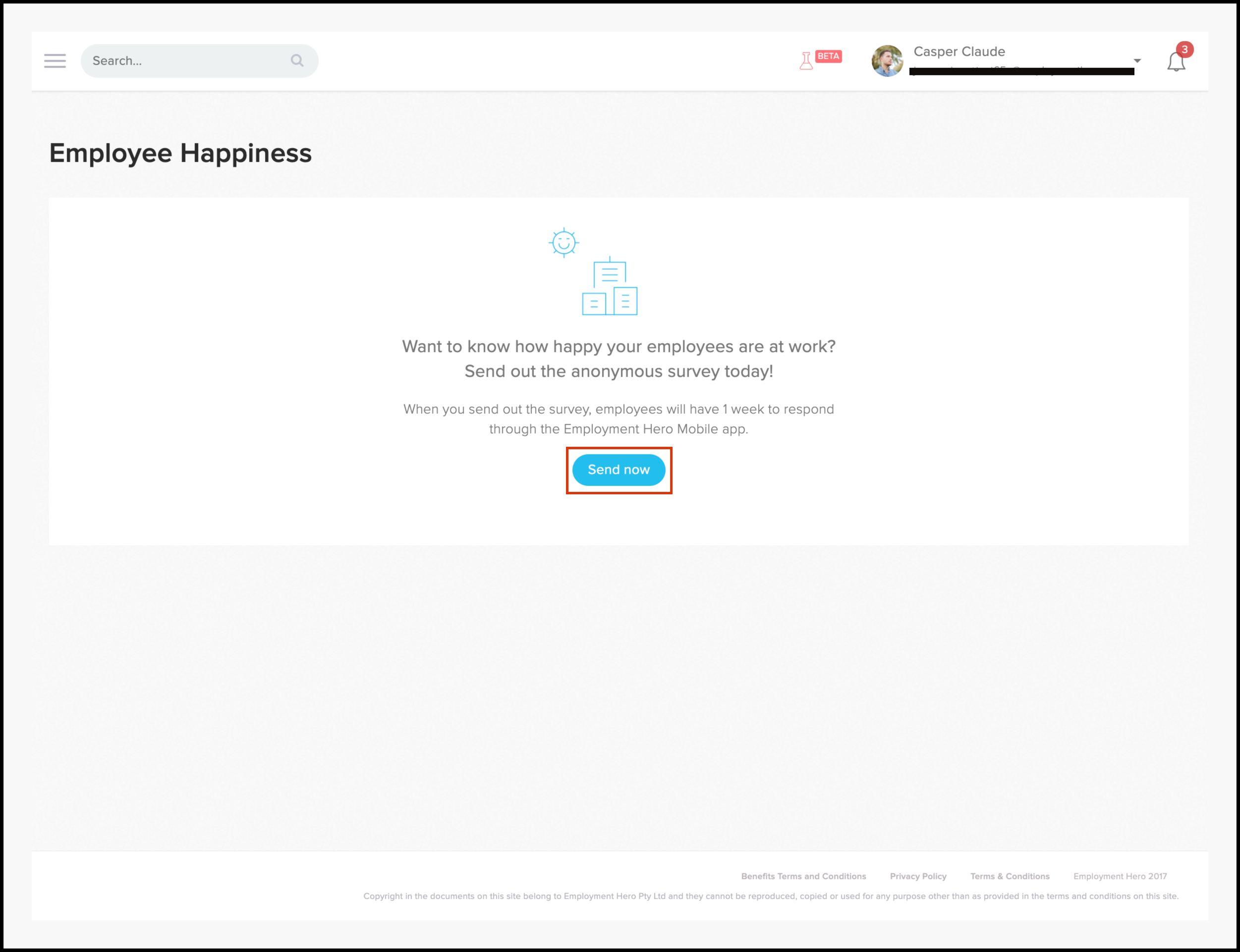 - How do I manage my organisation's custom surveys via Employment Hero? This feature allows you to create a one-off custom survey, choose the intended audience, and then send it on to those users.