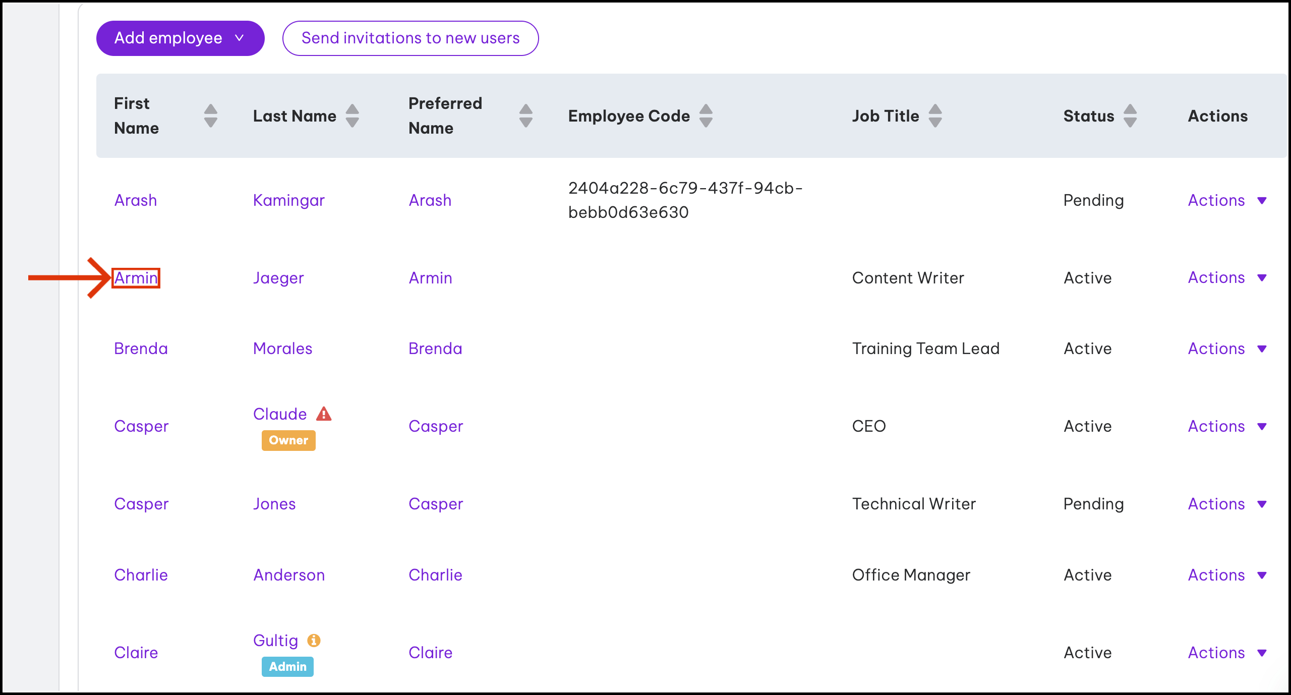 - Scroll down to the groups field and click next to the group you want to remove the employee from.