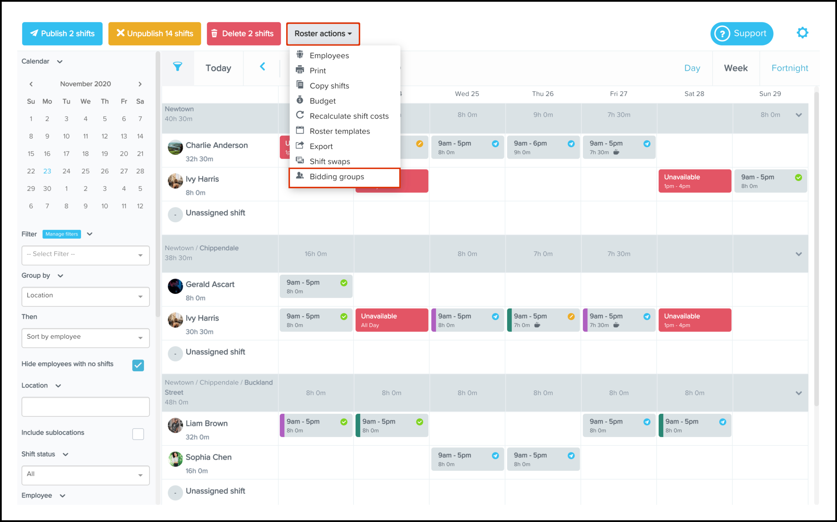 To use the Shift Bidding features, you will need to have them turned on via Roster Settings. To read further information on how to access Roster Settings, refer to this article.