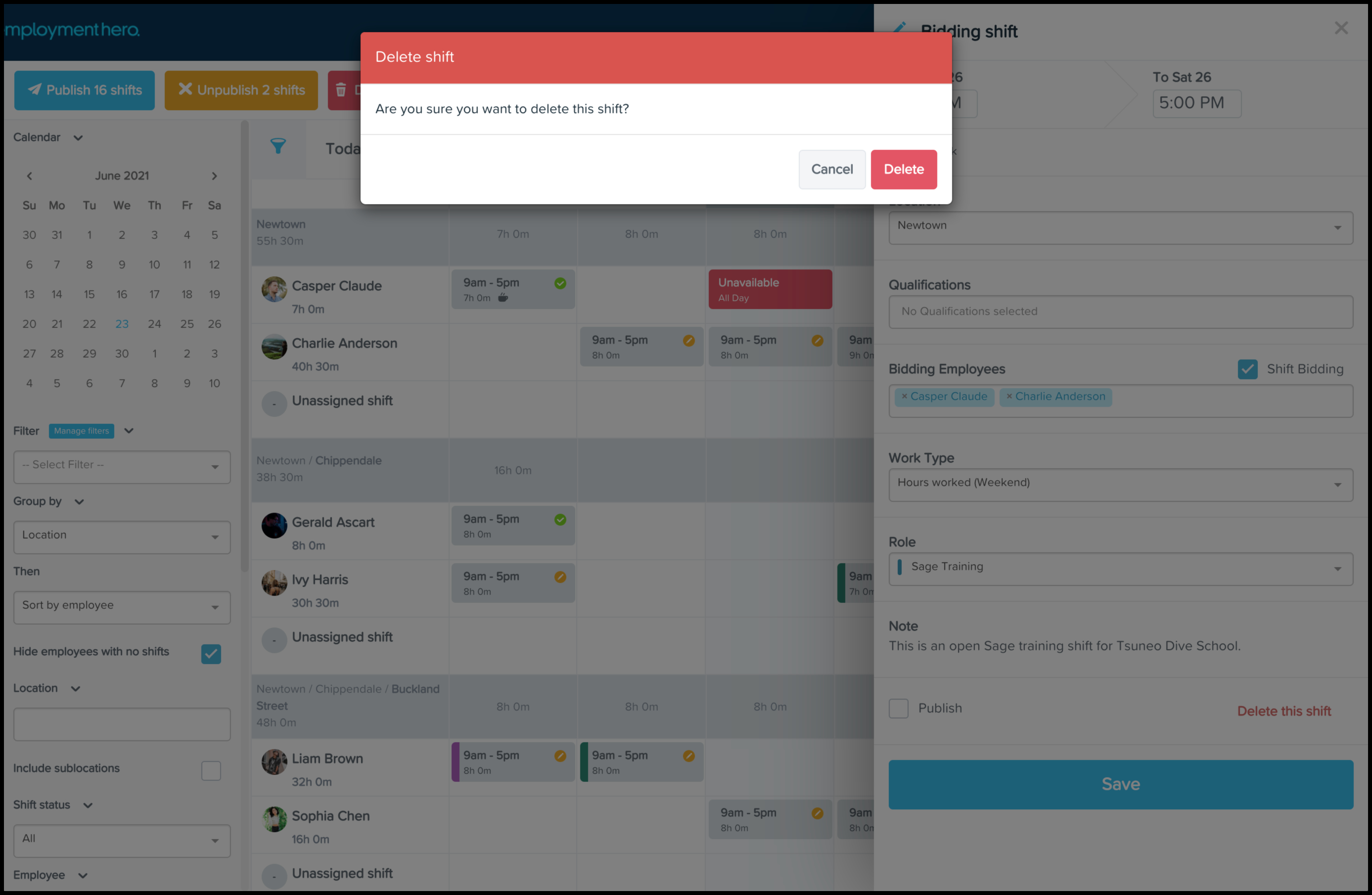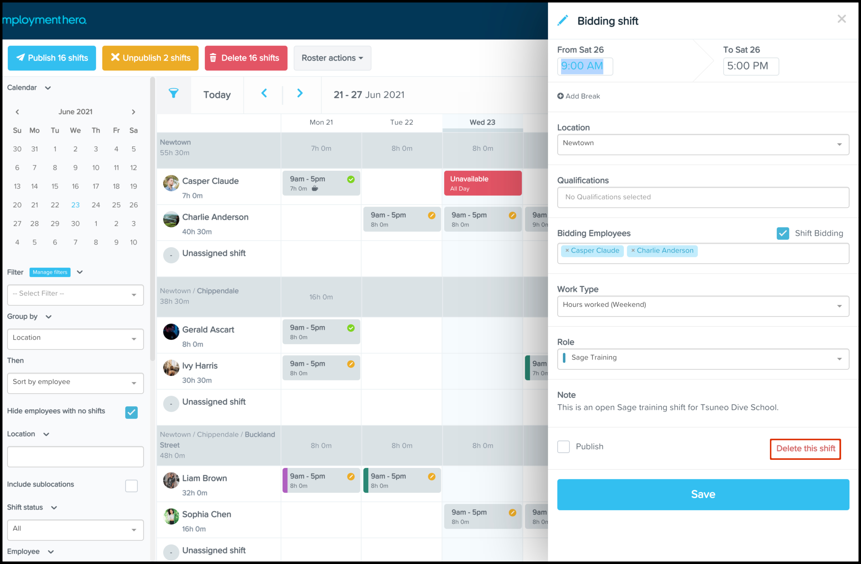 The Rostering module has a Shift Bidding feature that lets you create a shift that multiple employees can bid on. You can include start and end times, work types, classifications, and roles. You can also change these details if necessary.