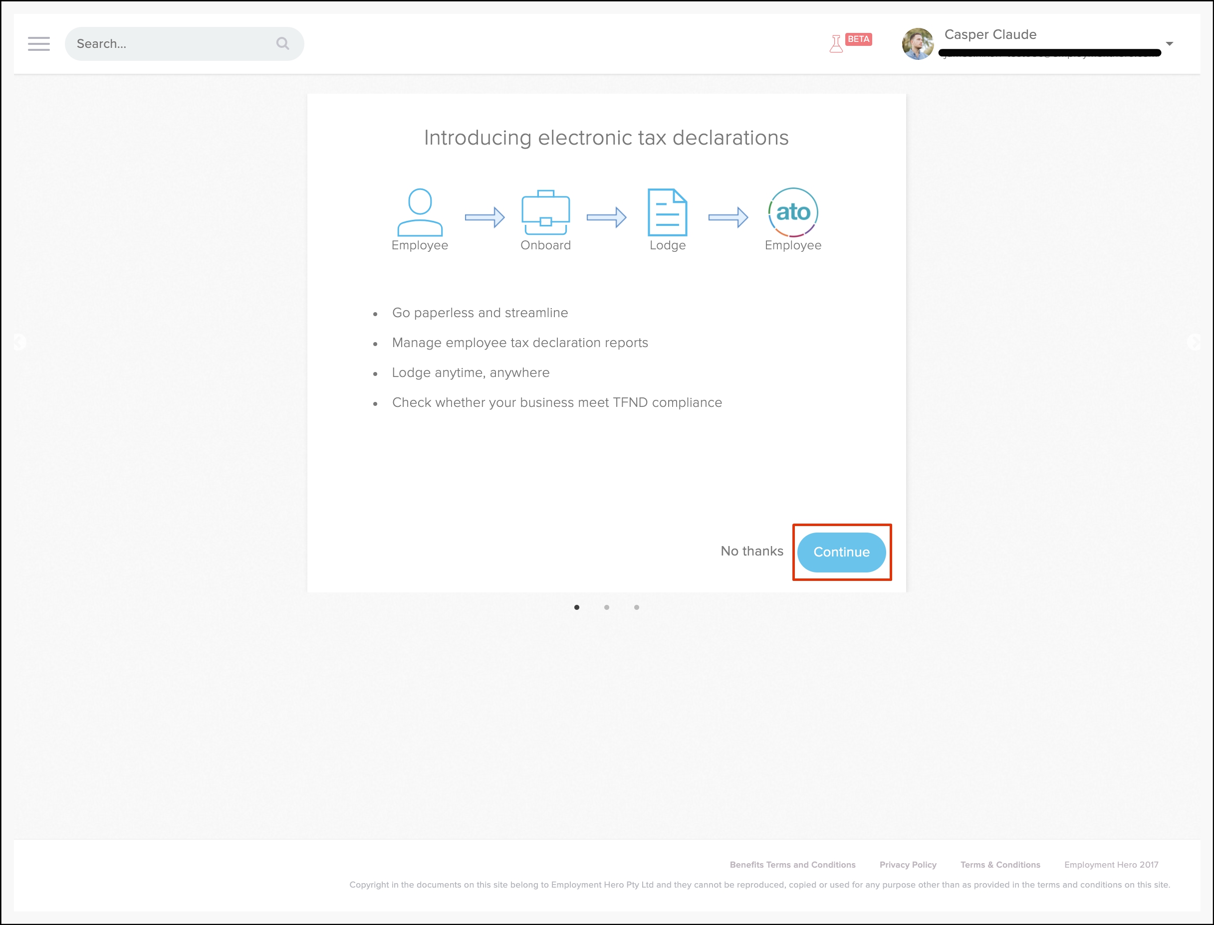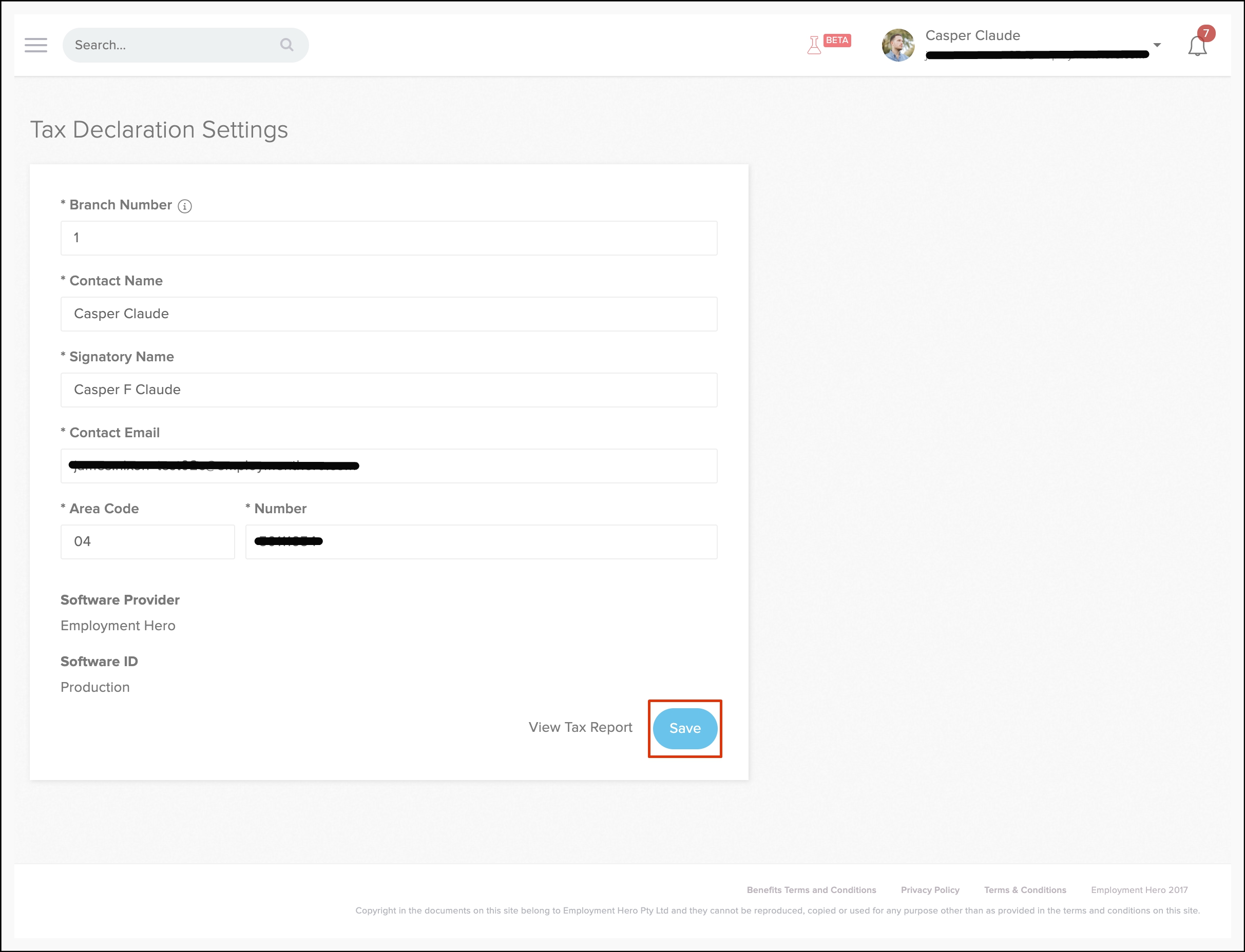 The Tax Declaration Setup feature guides you through the steps involved in enabling the Electronic Tax File Declaration (E-TFND) feature built into Employment Hero. This feature will allow you to submit your employees' tax file declaration through Employment Hero, reducing the administrative time you spend on managing your employees' tax file declarations.