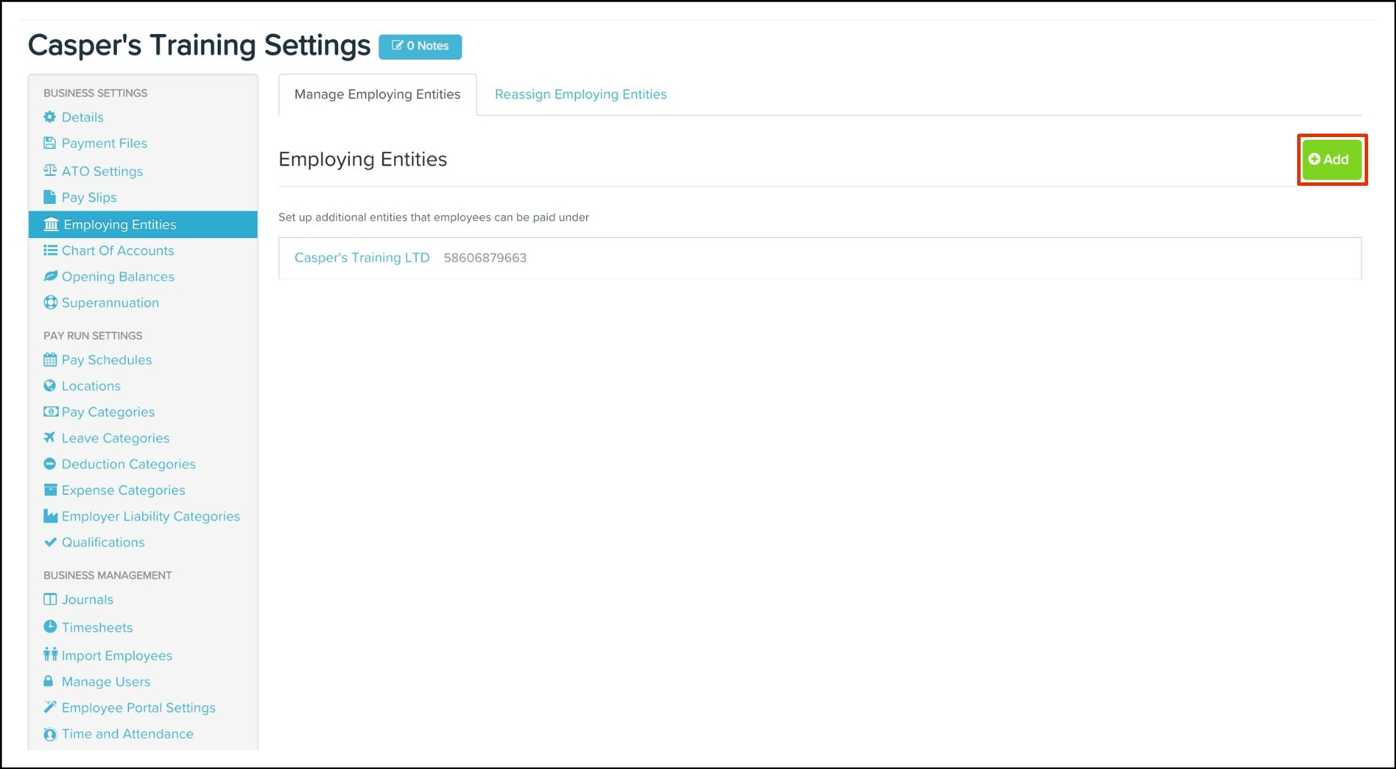 The error occurs if the employing entity does not exist within EH Payroll classic, because of this, Employment Hero automatically disables the employing entity causing this issue.