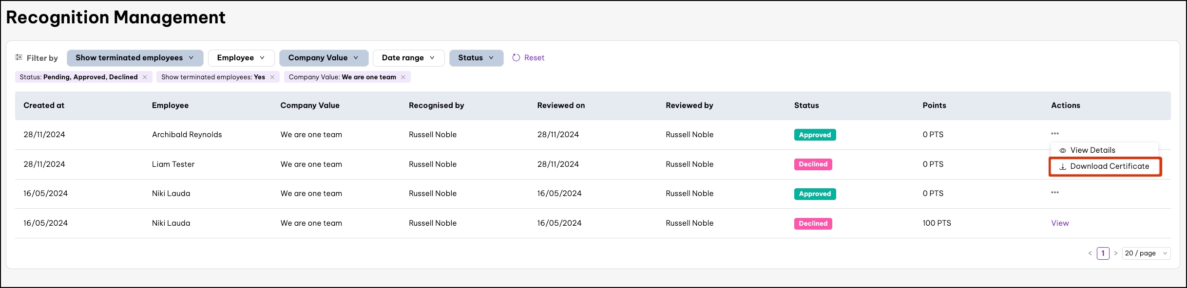 - Manage your organisation's recognition settings: This article walks through the different recognition settings available for your organisation.