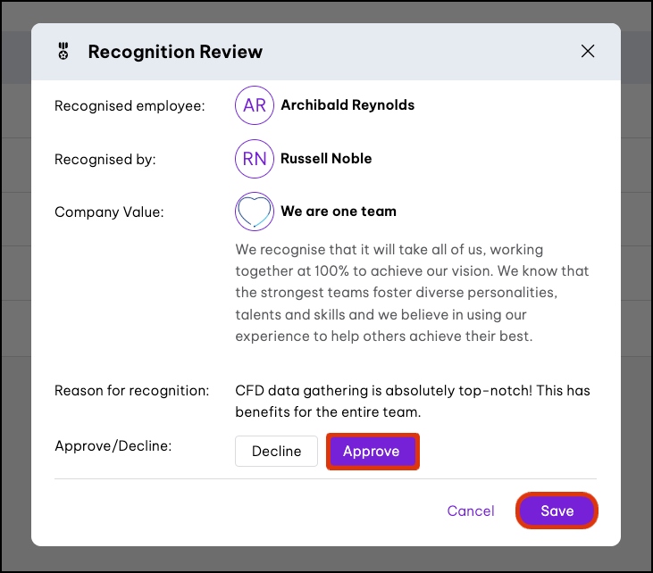 If you have chosen to reward employees with Hero Points, please note: once approved, these points cannot be reversed or cancelled.