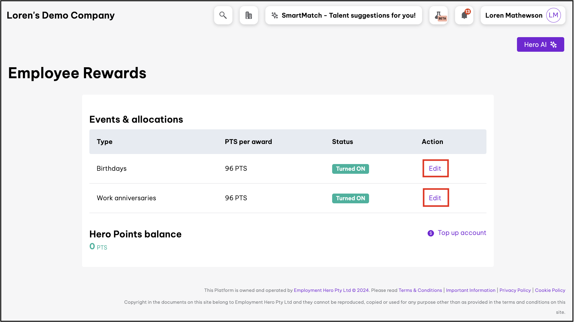 - Manage Hero Points This feature allows you to top up your organisation's Hero Points balance and view the transactions that users in your organisation have made.
