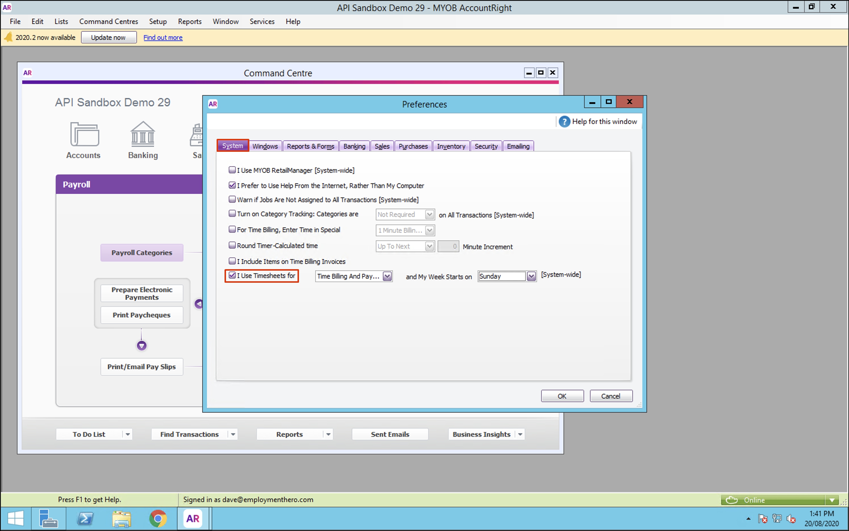 The first step is to enable using timesheets within your MYOB Account Right platform. The steps on how to undertake this are: