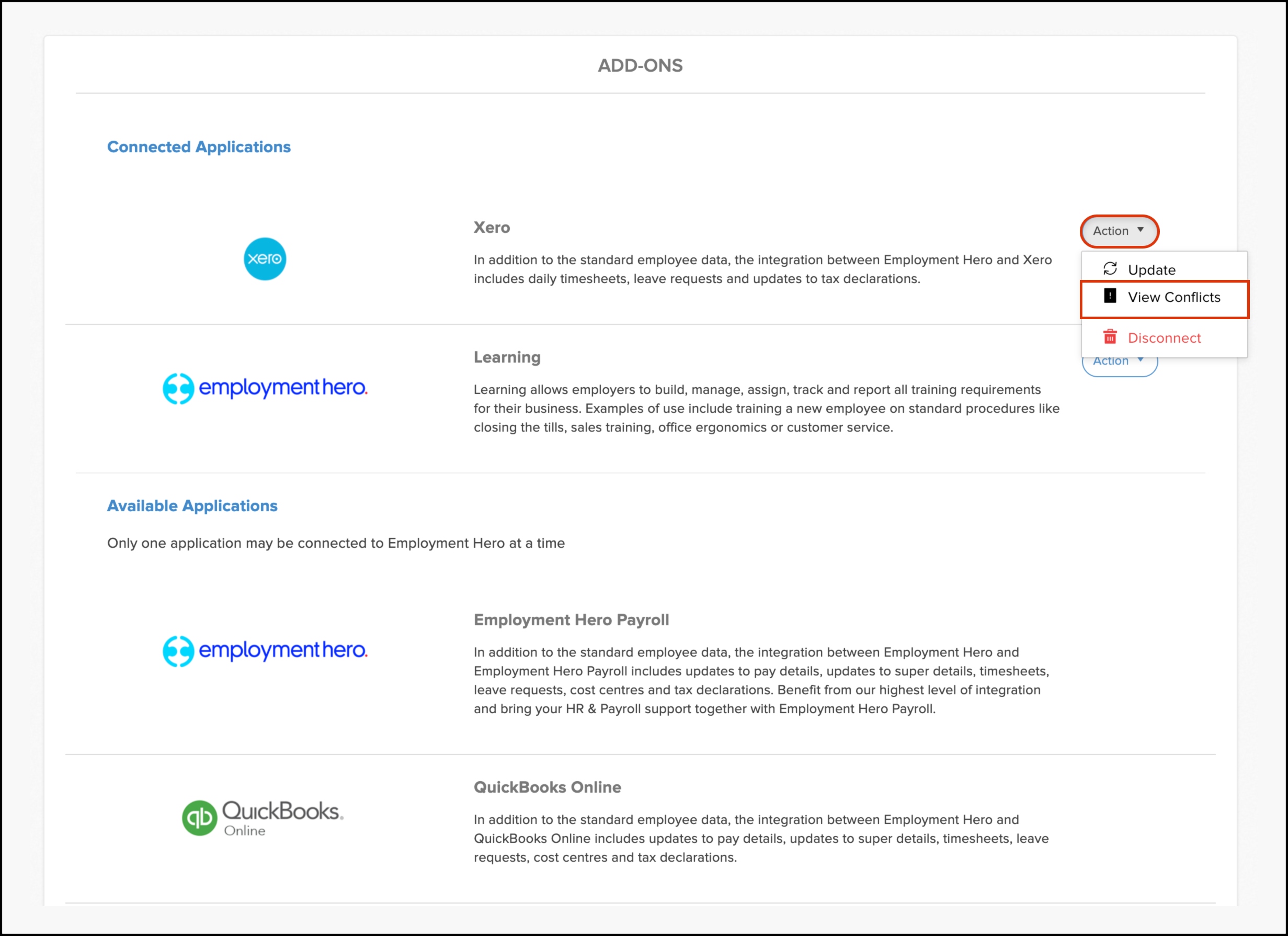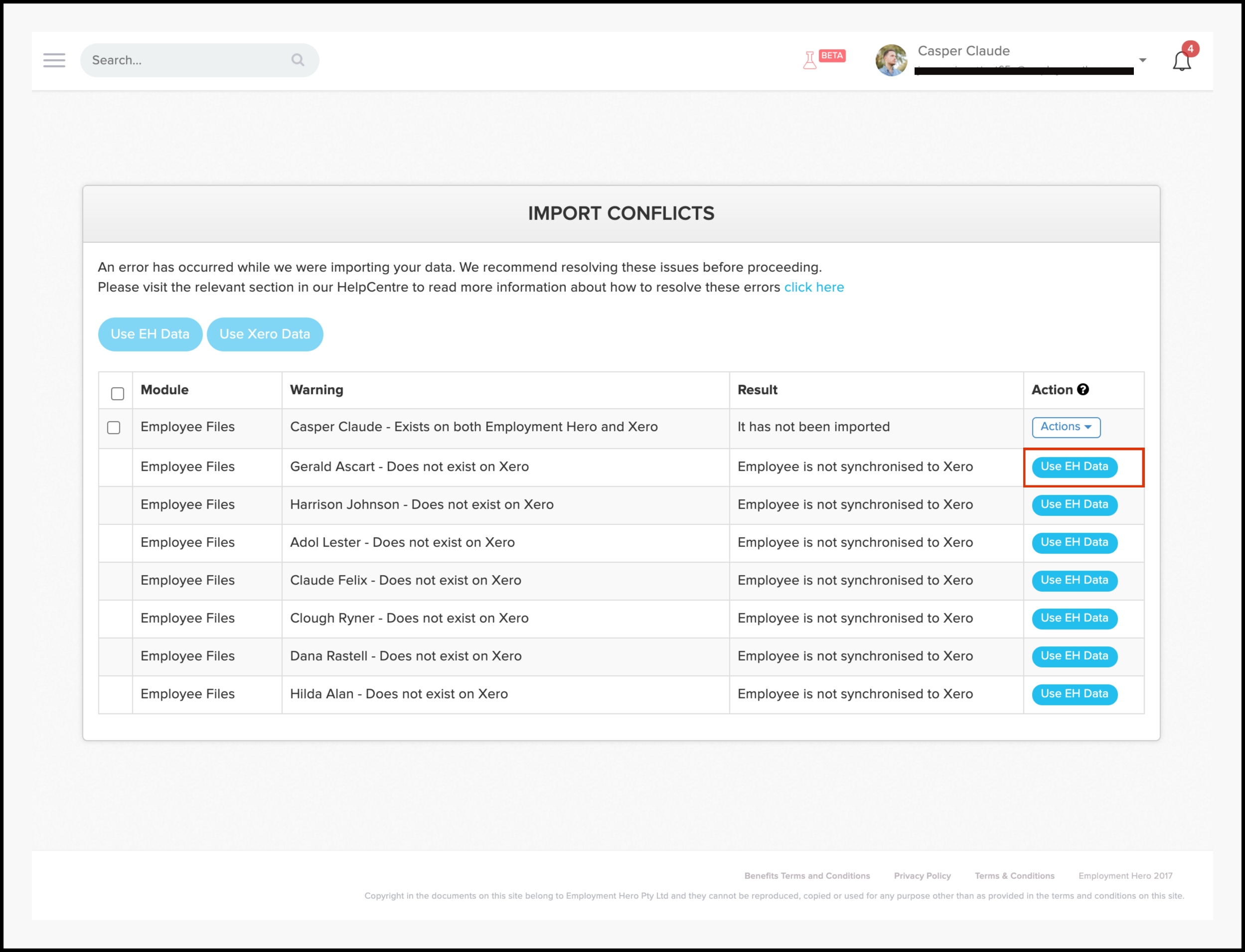 | Import conflict | Employee file | Employee does not exist on Xero |