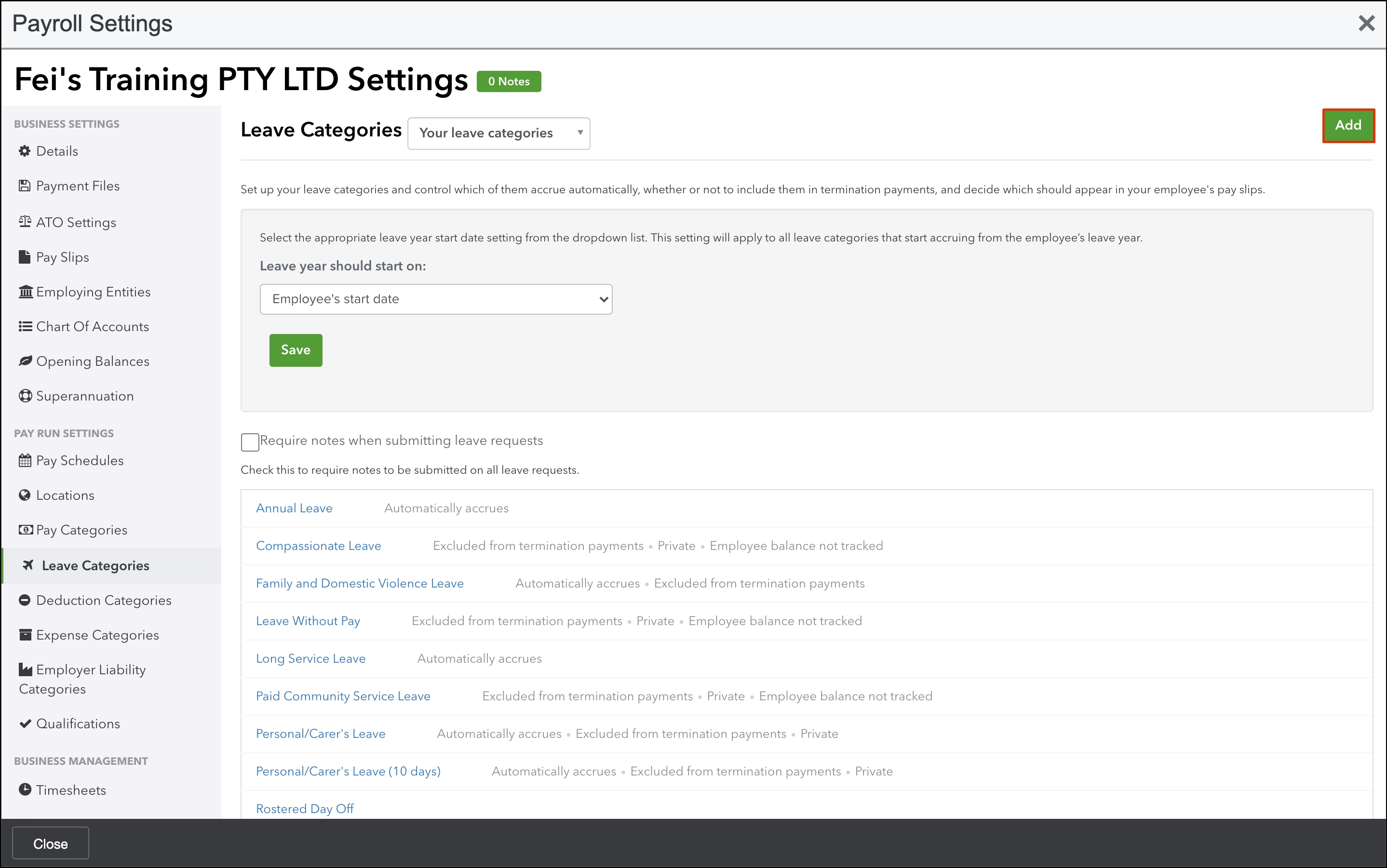 - Click the Leave Categories submenu.