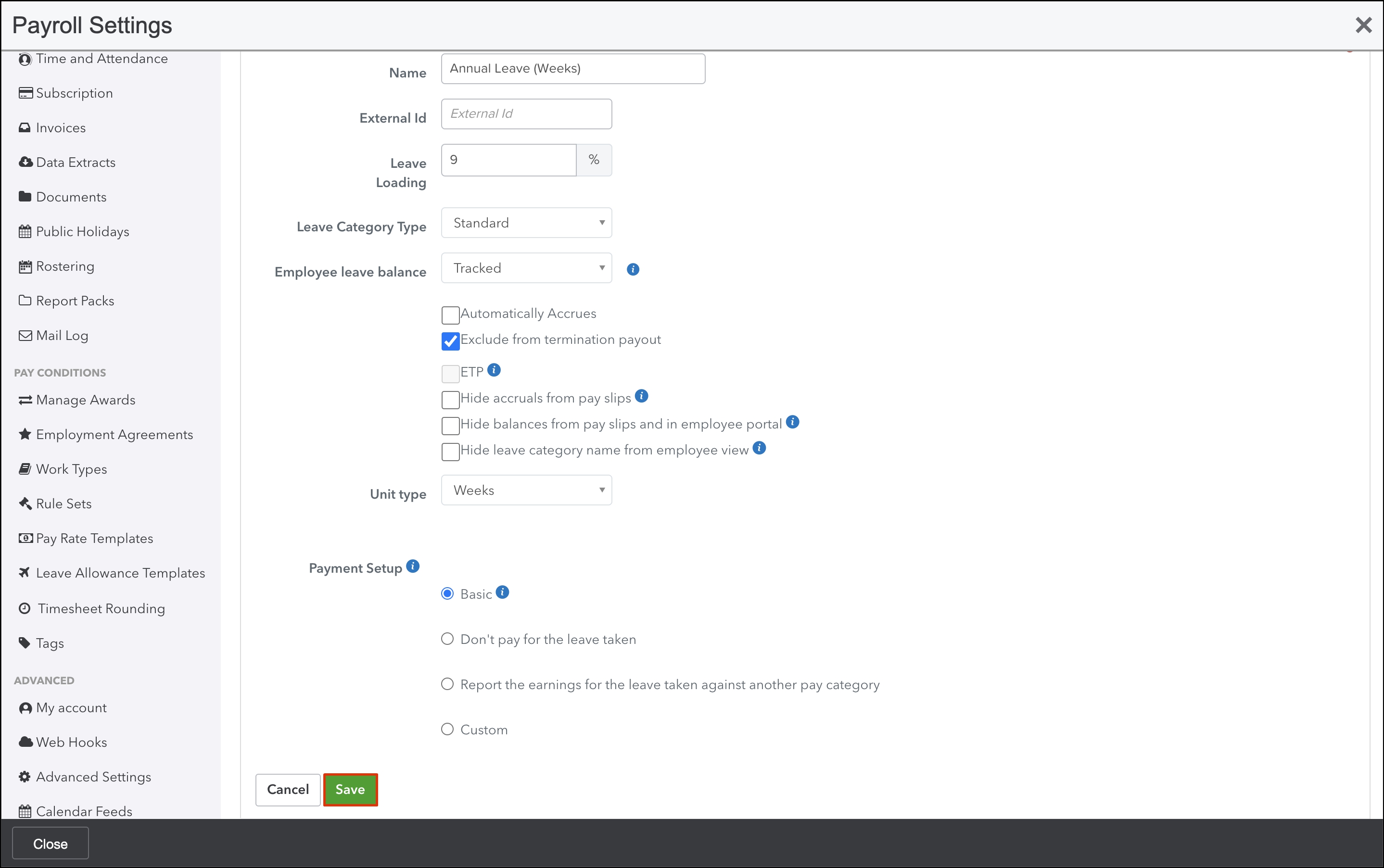 - Click the Payroll Settings submenu.