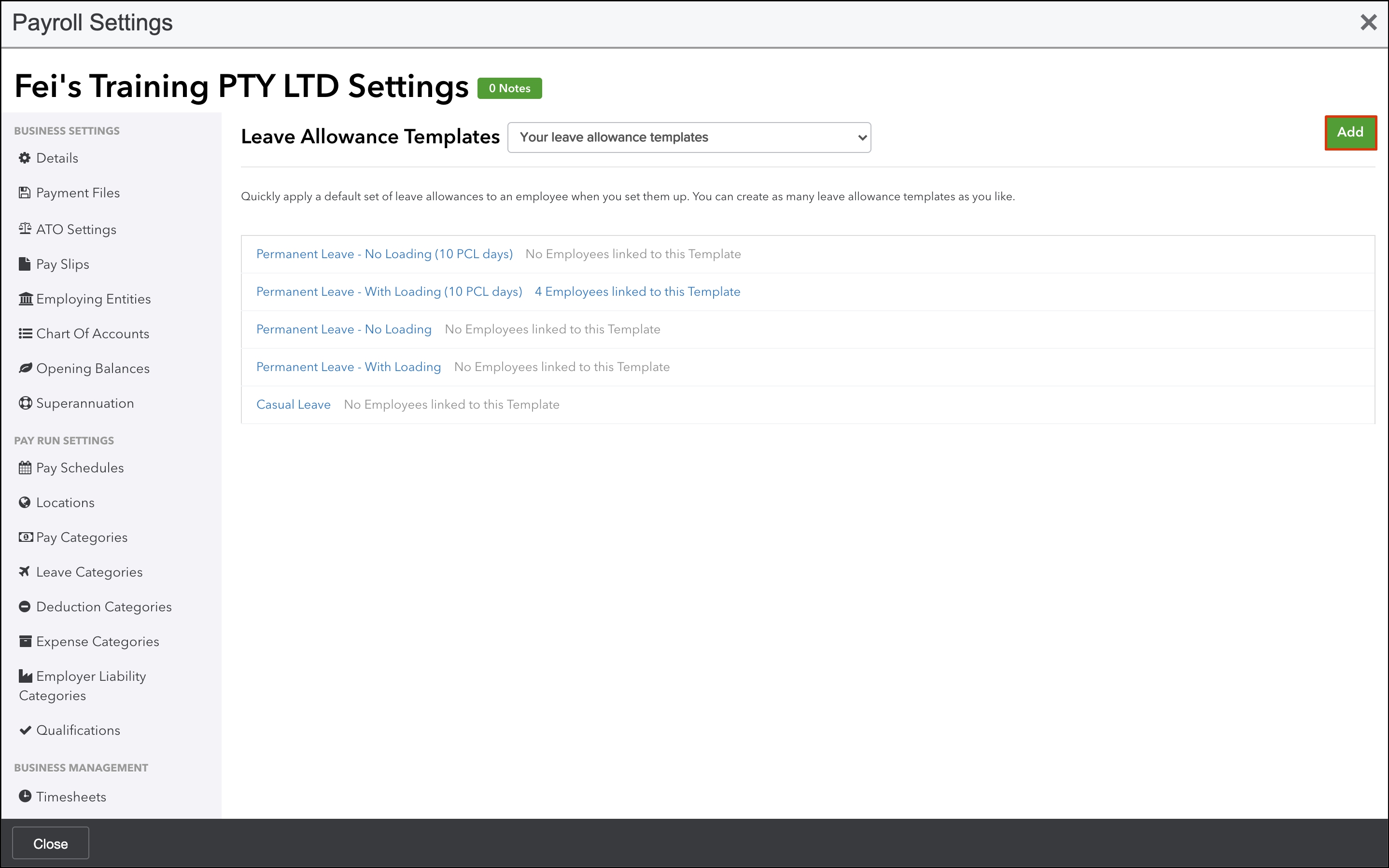 - Click the Leave Allowance Templates button.