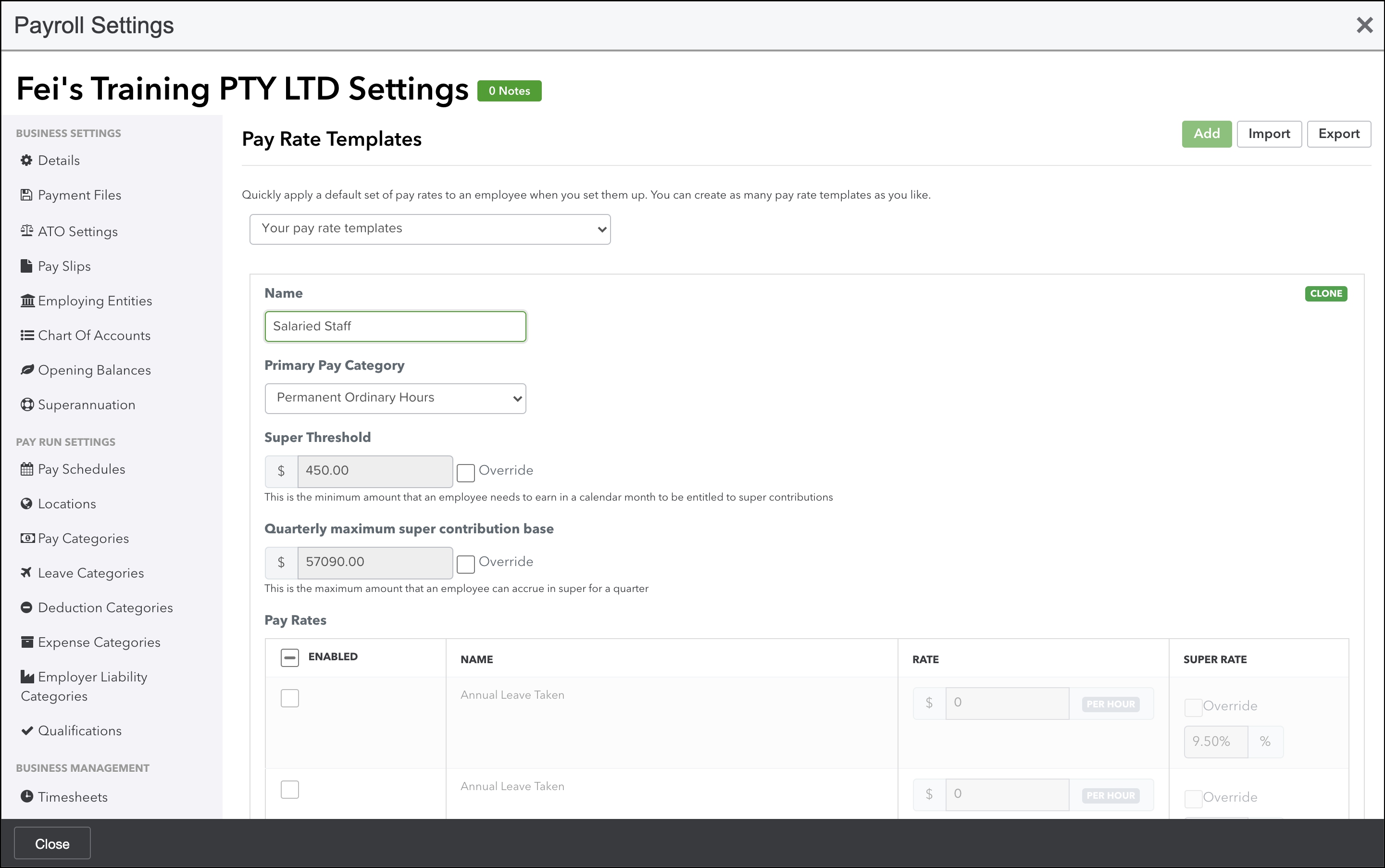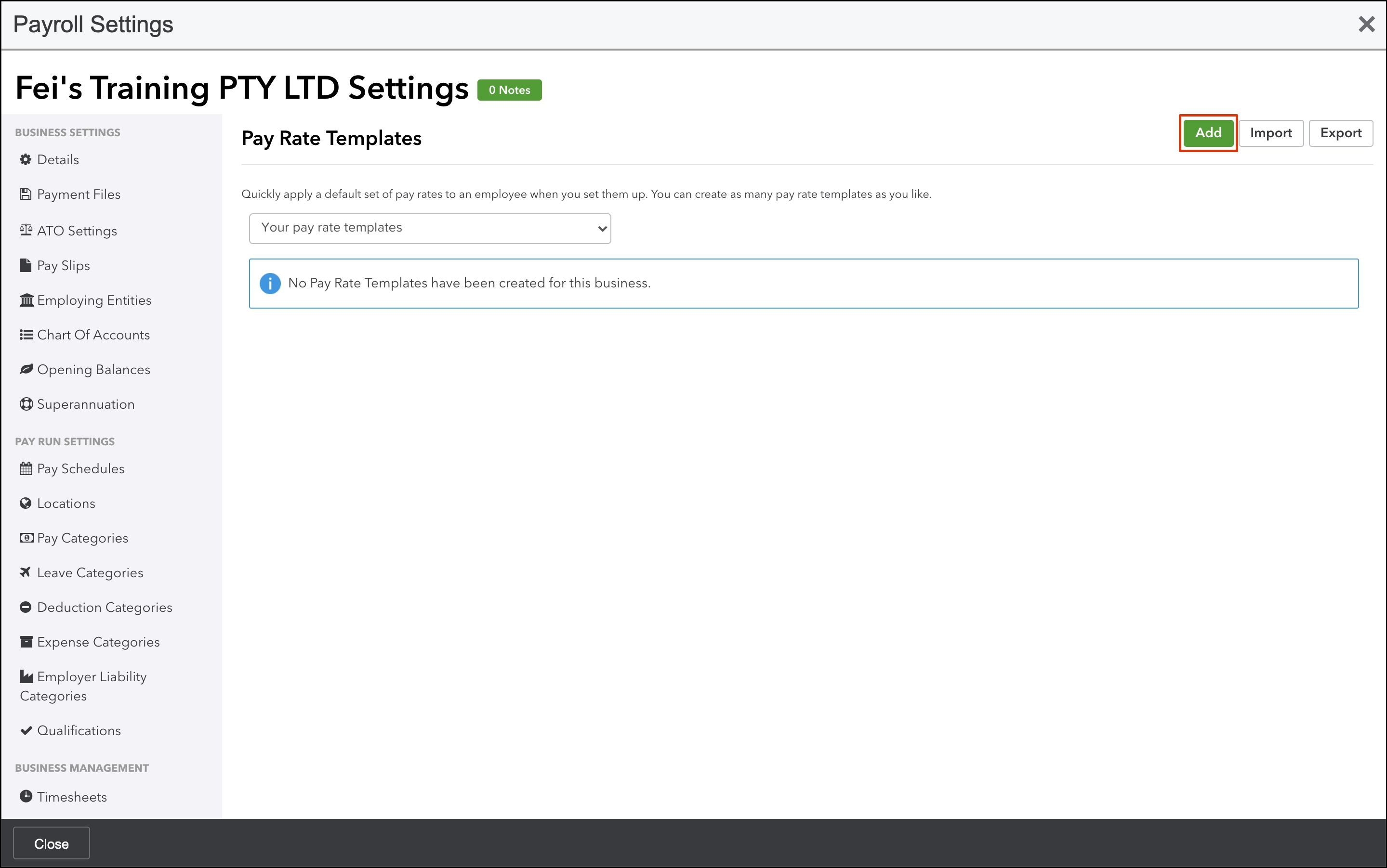 | Import conflict | Pay Rate Template | Pay rate template does not exist in QuickBooks Online |