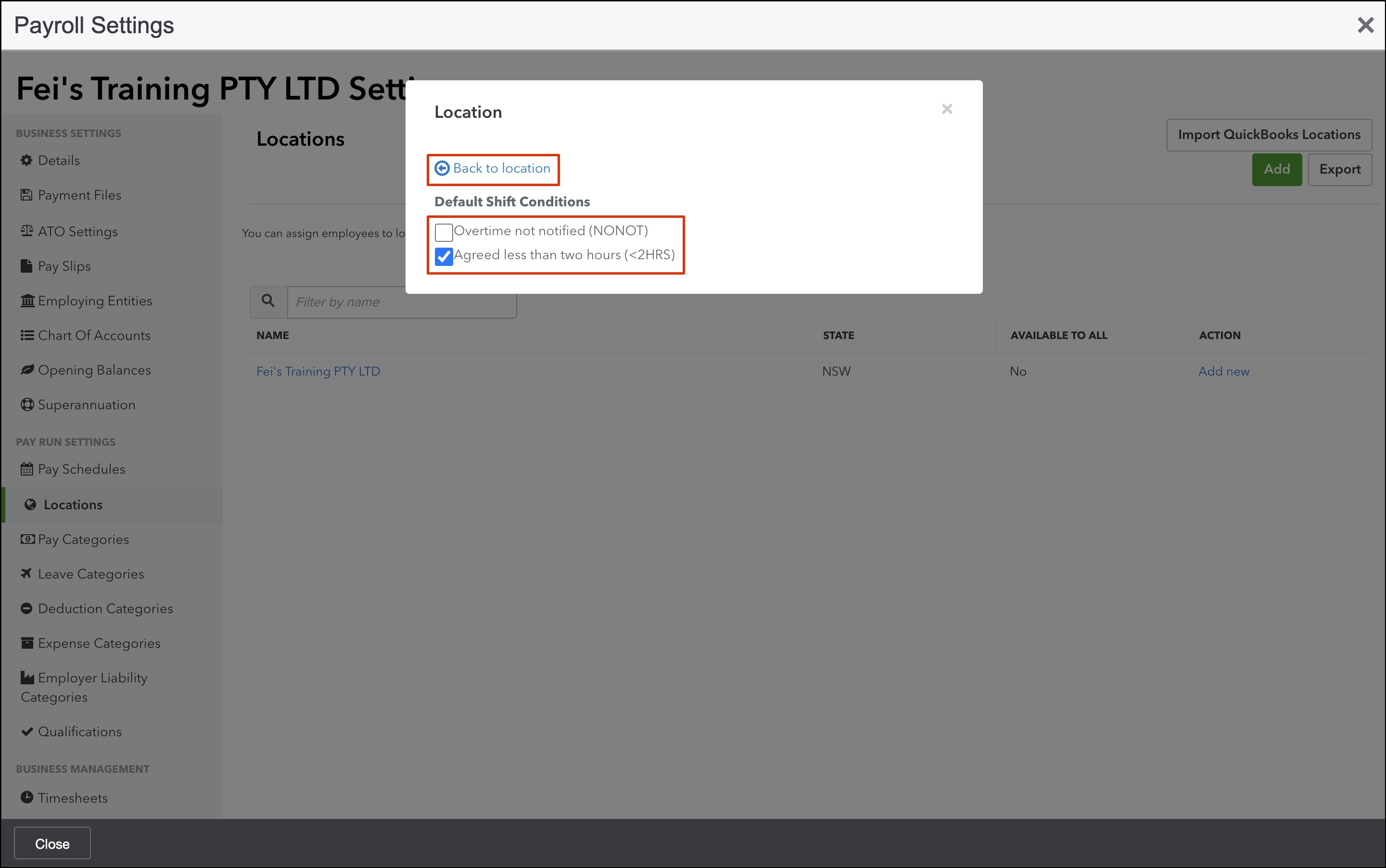 The error occurs if the location (Cost Centre in Employment Hero) does not exist in your QuickBooks Online platform because of this, we will automatically disable the location causing this issue.