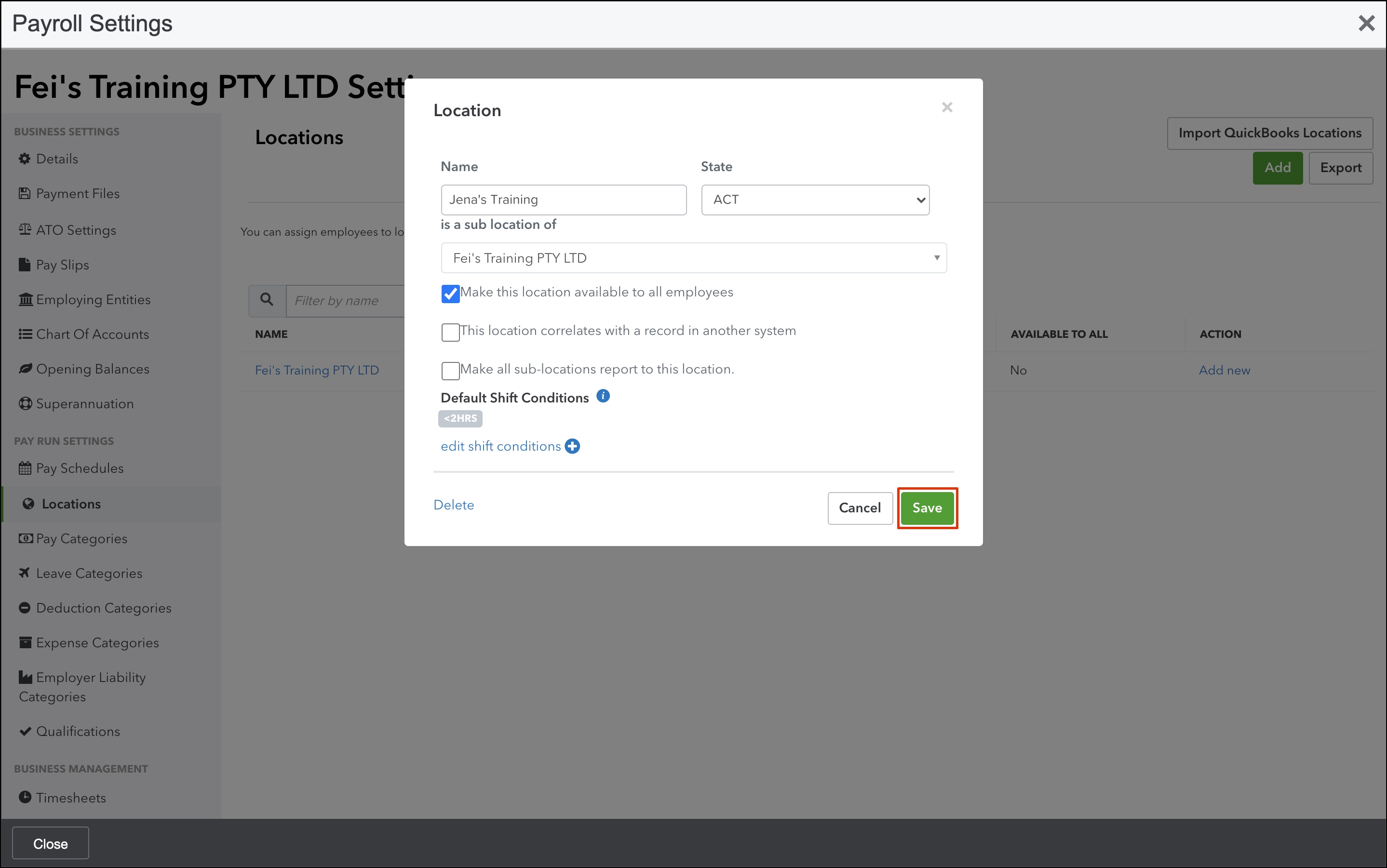 - Make this location available to all employees.