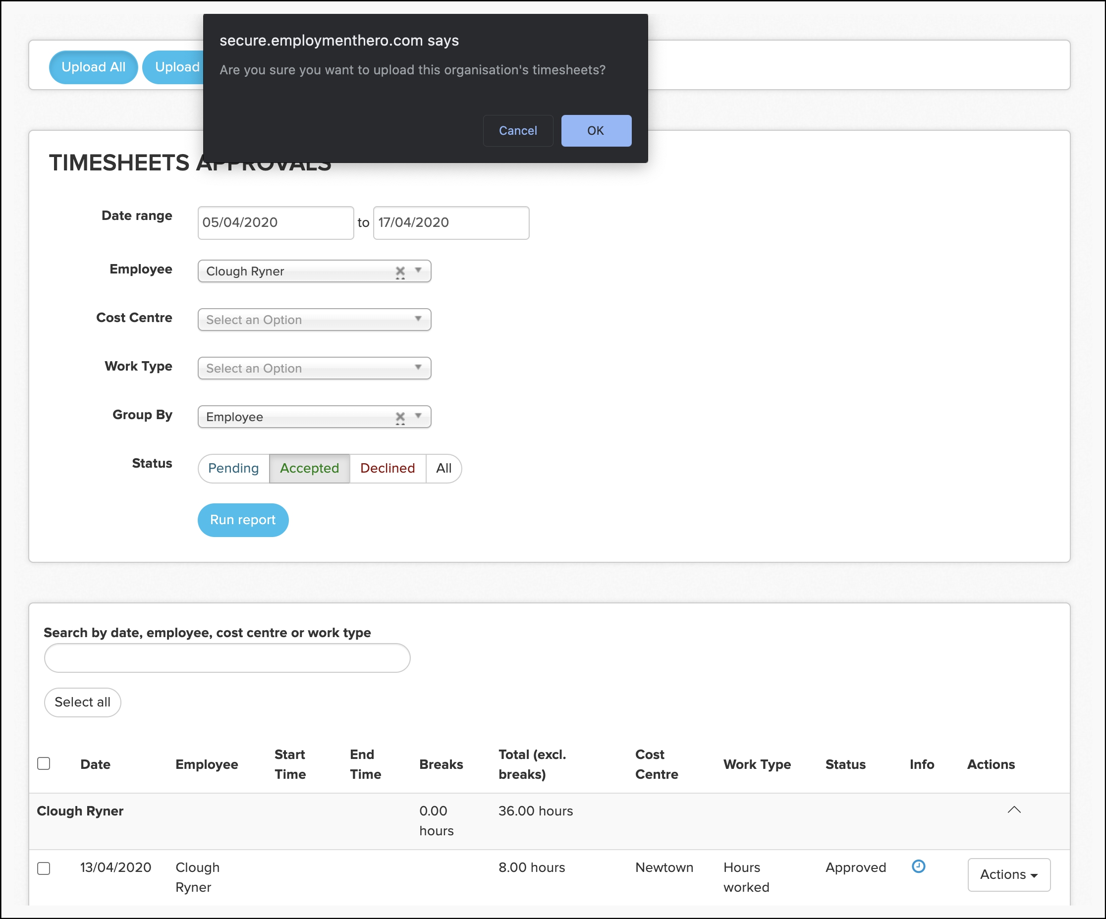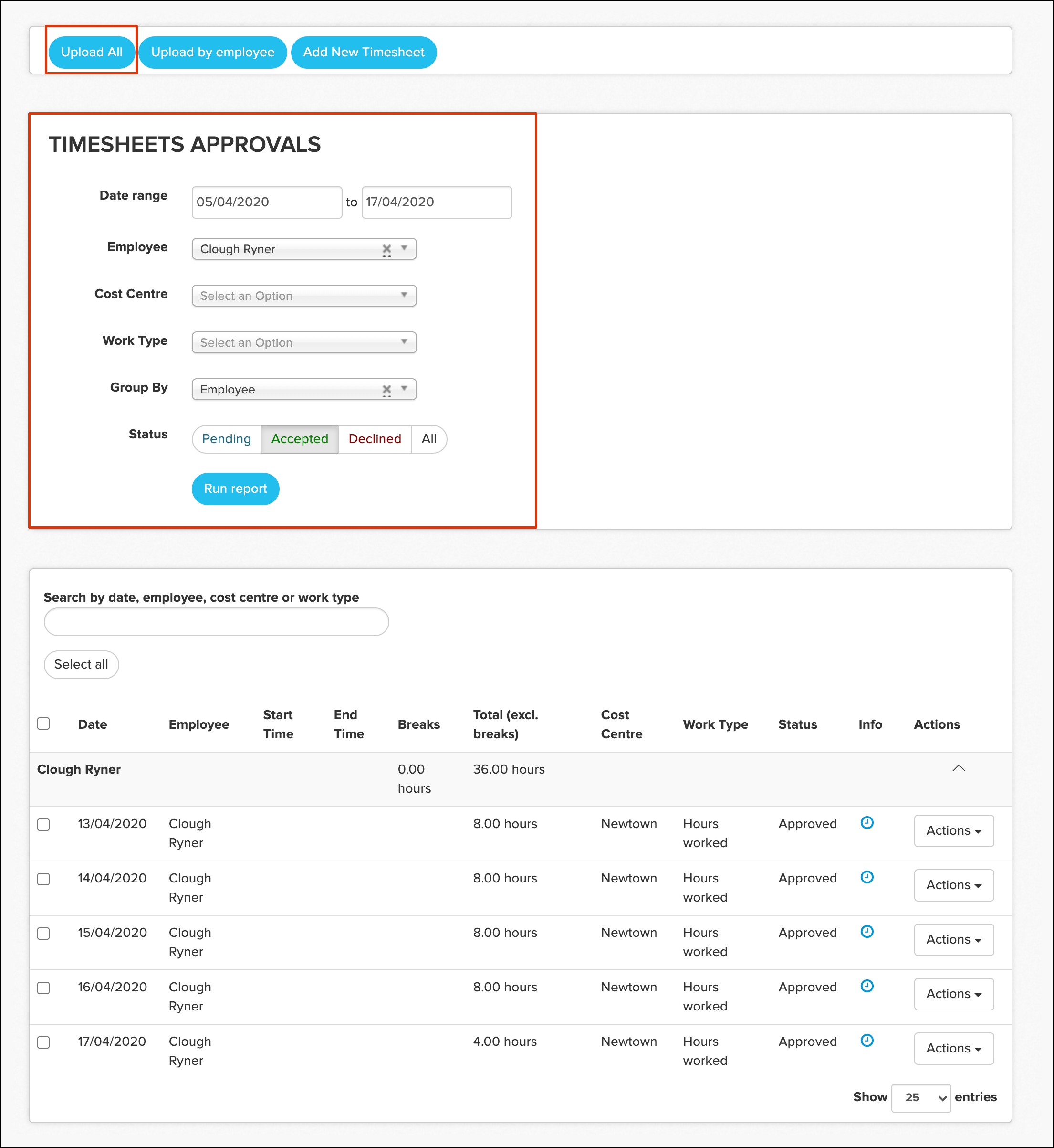 Once your employees submit timesheets for their hours worked, the HR classic platform will email a notification to their primary manager, notifying them they now have timesheets to approve. Upon approving timesheets, an administrator will need to upload this information to the payroll platform. The steps on how to undertake this are: