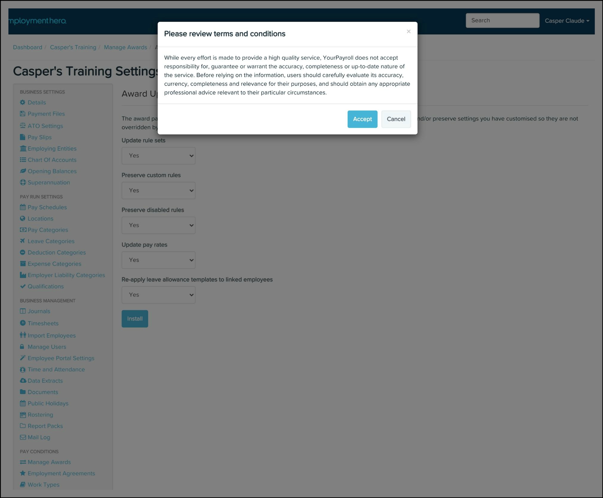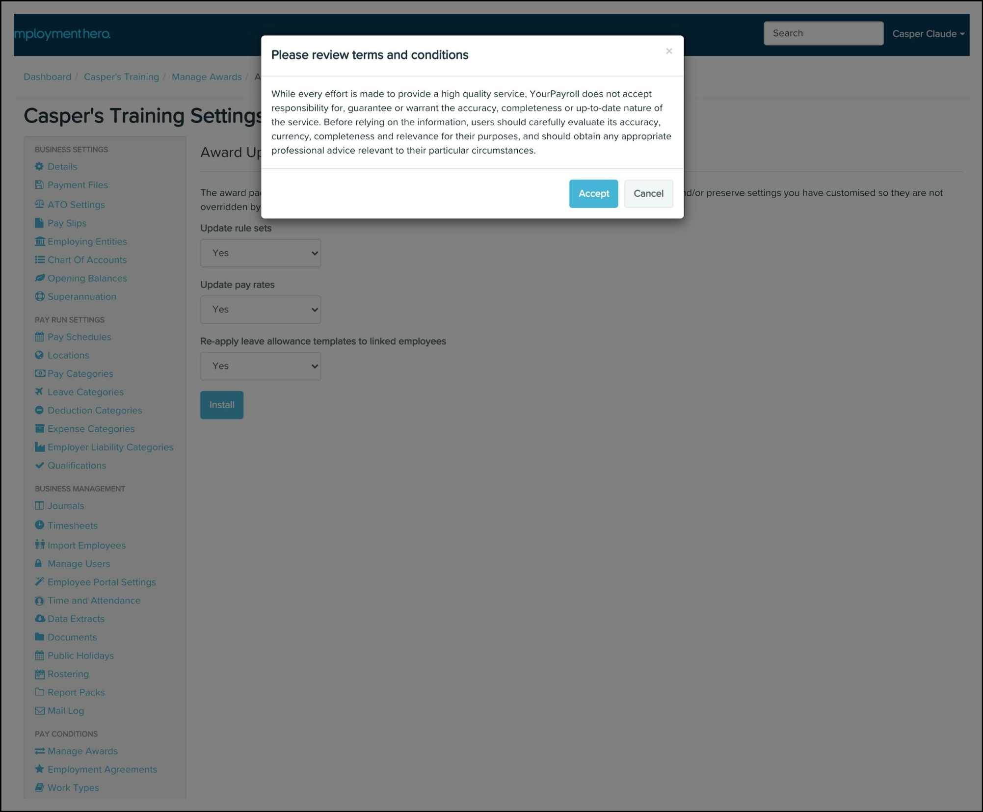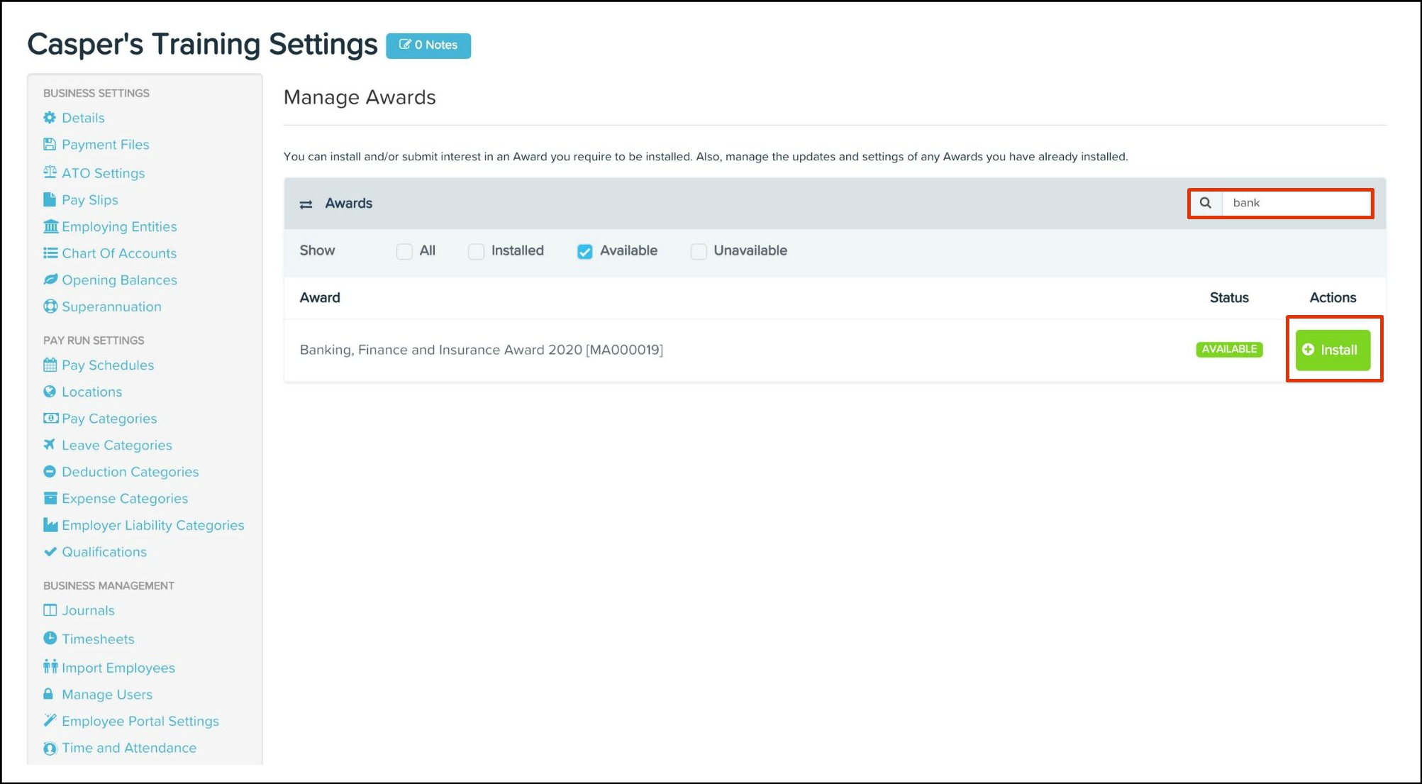 To install and manage an award you must have a Premium Payroll account.