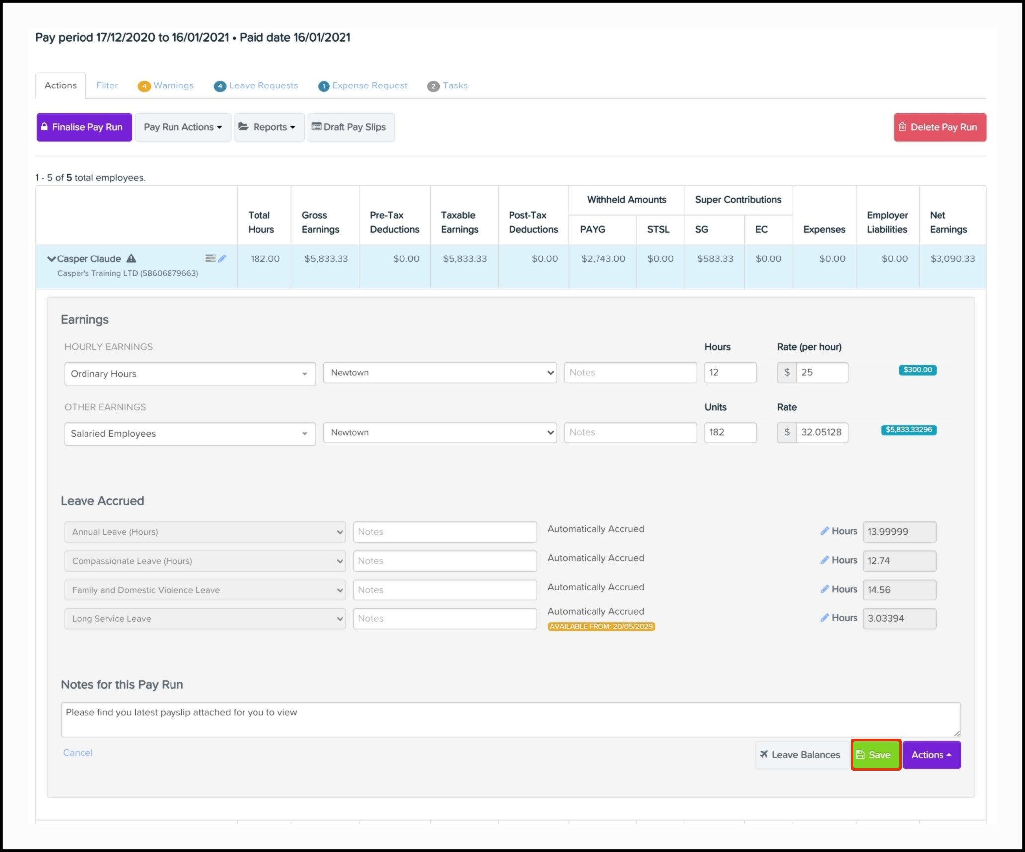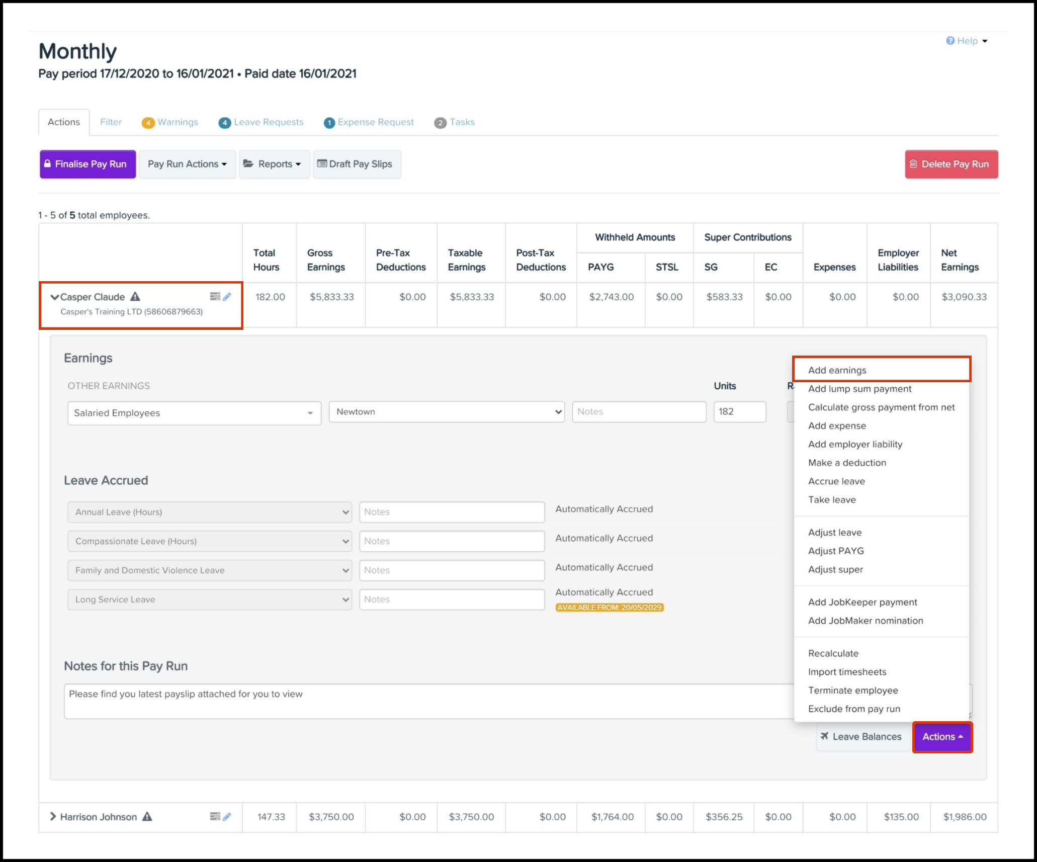 This feature allows you to add additional earnings lines for an employee during the pay run and specify details such as the pay category and rate. You can also use this feature to delete employee earning lines. A pay run needs creating first, before you can add or remove an employee earning line. To read further information on how to create a pay run, refer to the following article.
