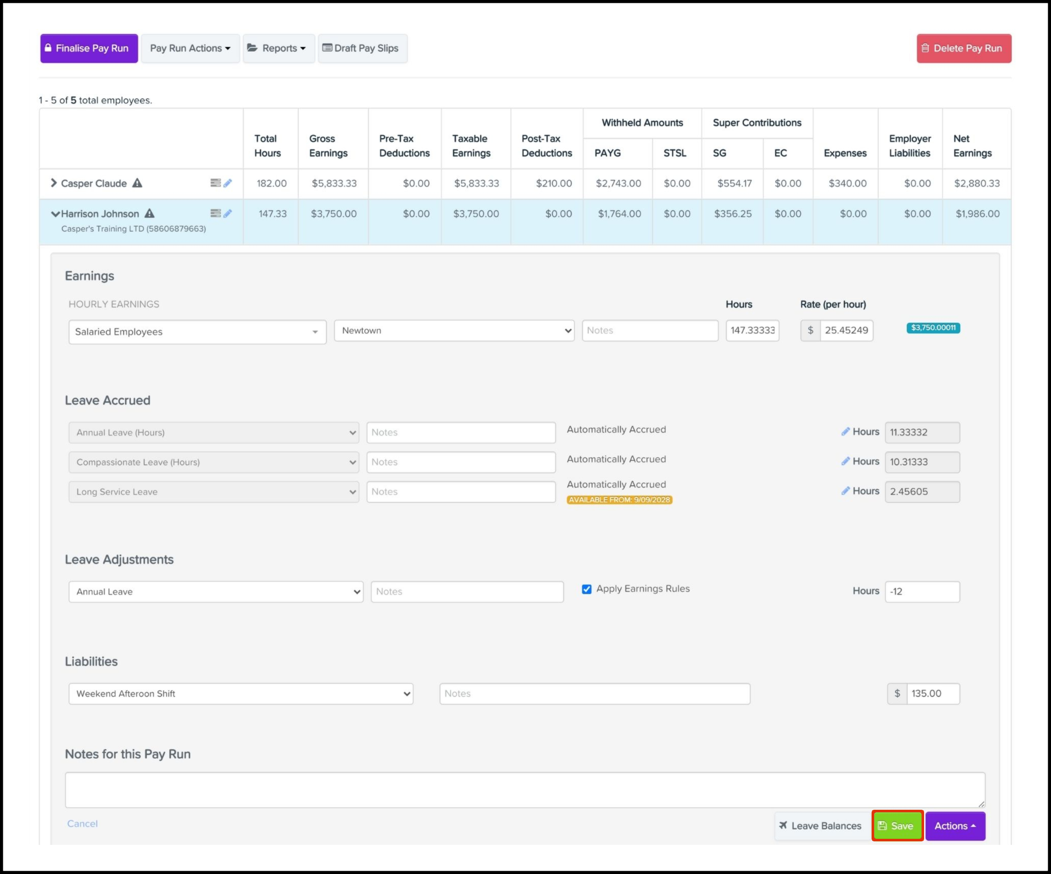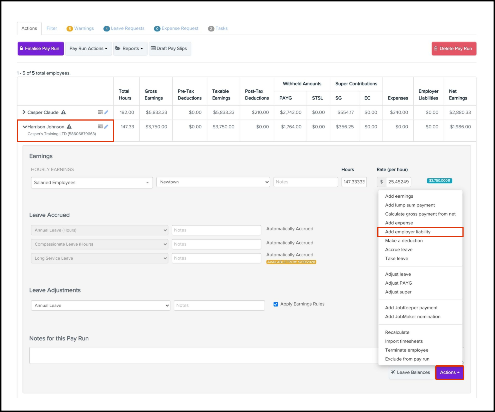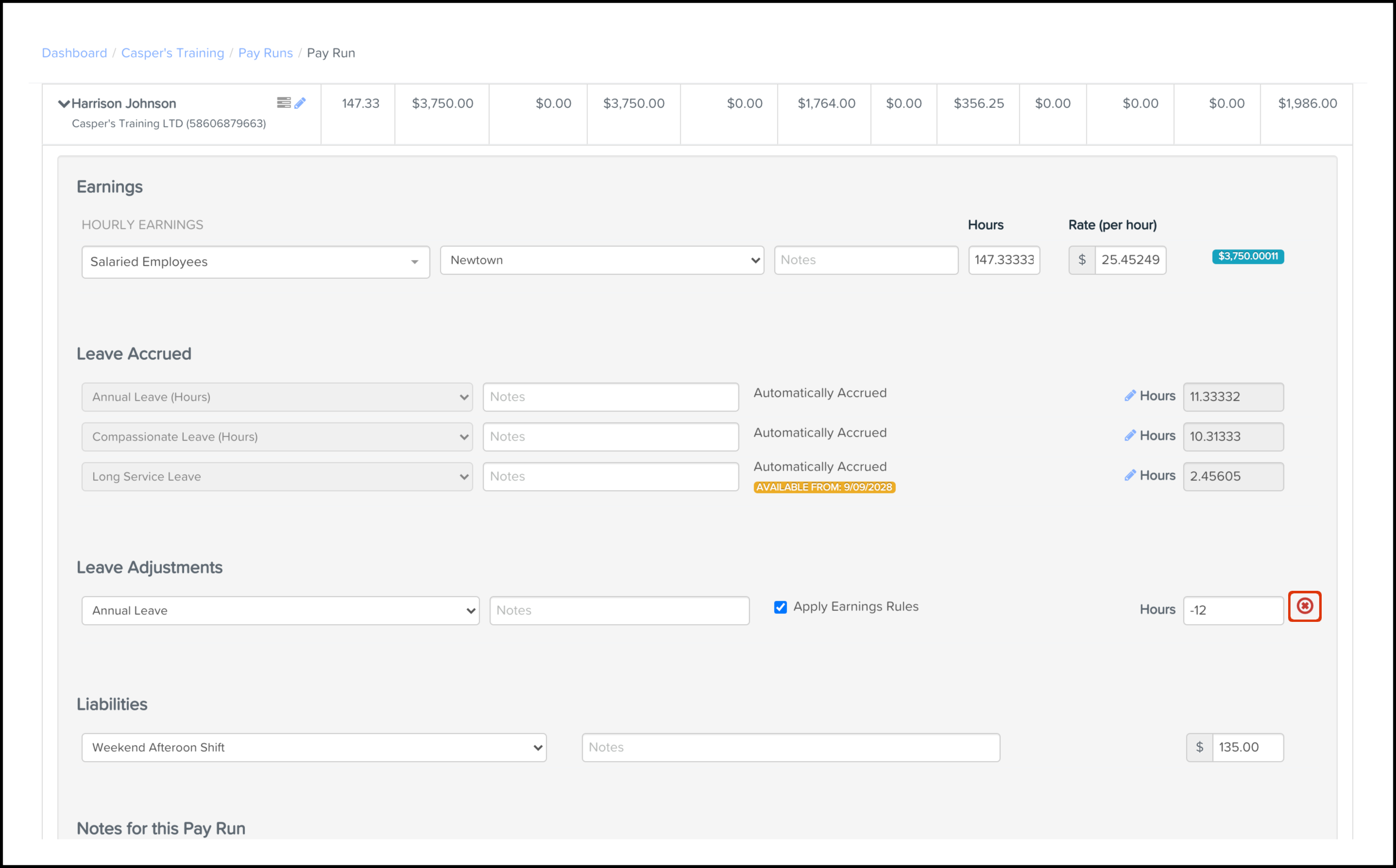 You can use the Employee Liability feature within the Pay Run module to add an employee liability line and specify details such as the liability category, units, and any required notes. You can also use this feature to delete an entry you added in error. Before assigning a liability, you need to create the employer liability category. Once you have created your category, a pay run needs to be created next, before you can add or remove an employee liability line within your pay run.
