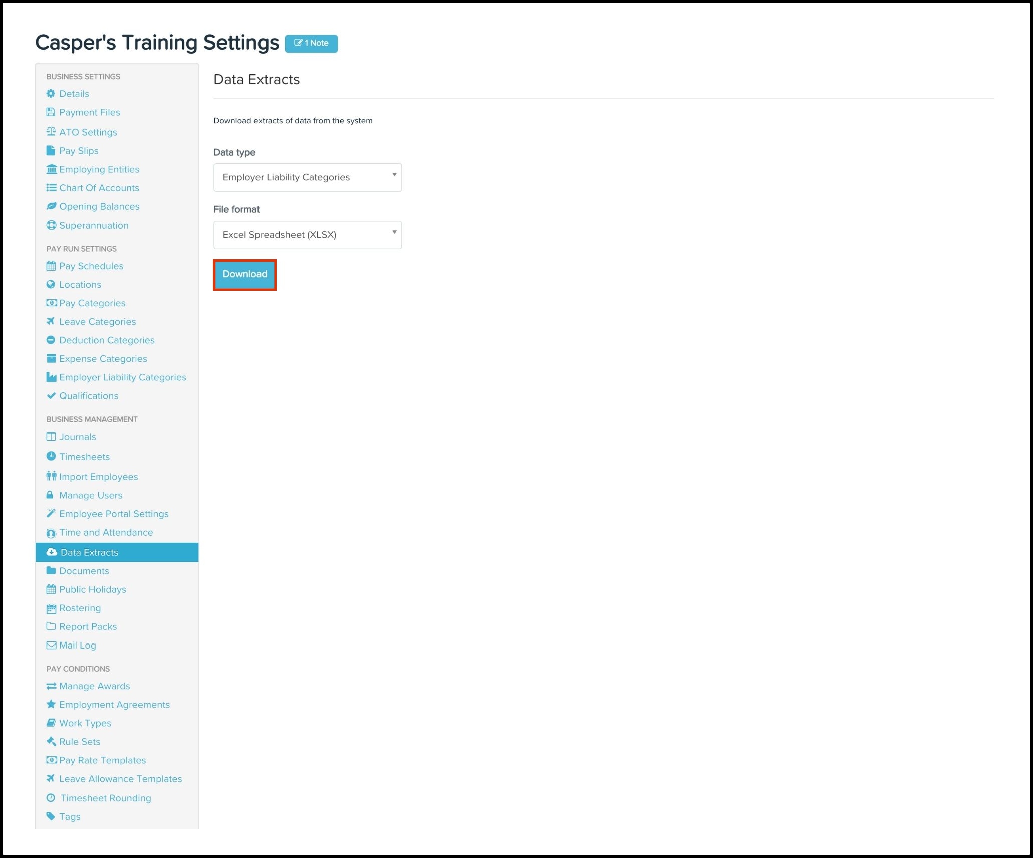 The Data Extract feature enables you to download your employer liability category data stored within your payroll platform as either a XLSX or CSV file.