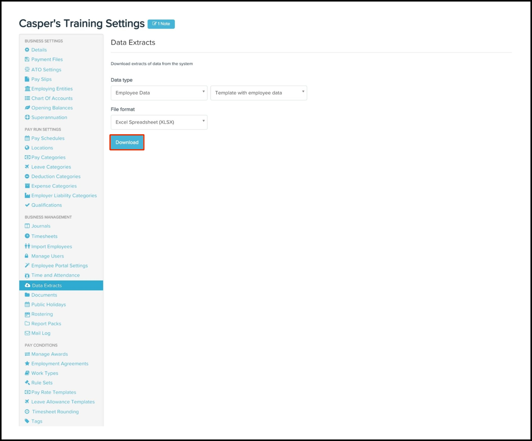 The Data Extract feature enables you to download your employee data stored within your Payroll classic platform as either an XLSX or CSV file.