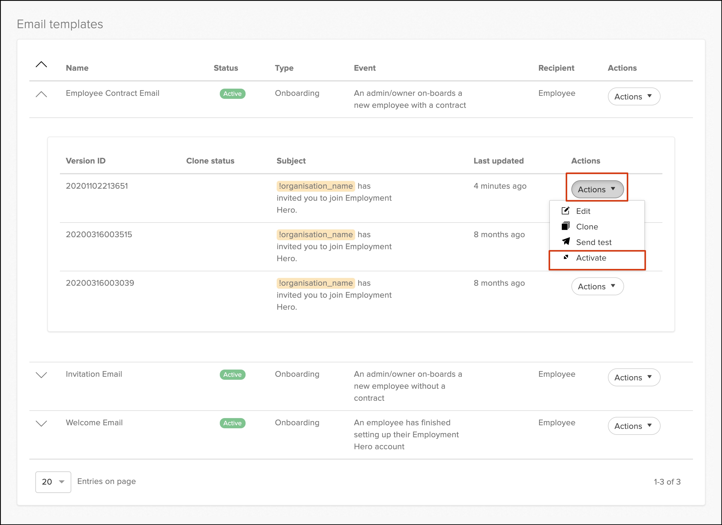 The Customizing Email Templates feature allows you to clone an existing template, customise its content, and insert the required pre-filled variables. Additionally, you can preview the email's appearance to end users and activate a cloned email to replace the default platform email.